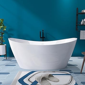 68" Acrylic White Oval Free Standing Bathtub, Adjustable Soaking Tub with Slotted Overflow, Chrome Pop-up Drain, Heat Retention, 67.70 X 30.30 X 27.60 Inches