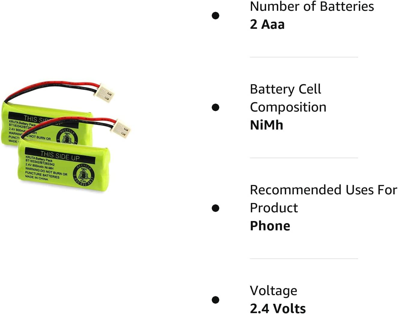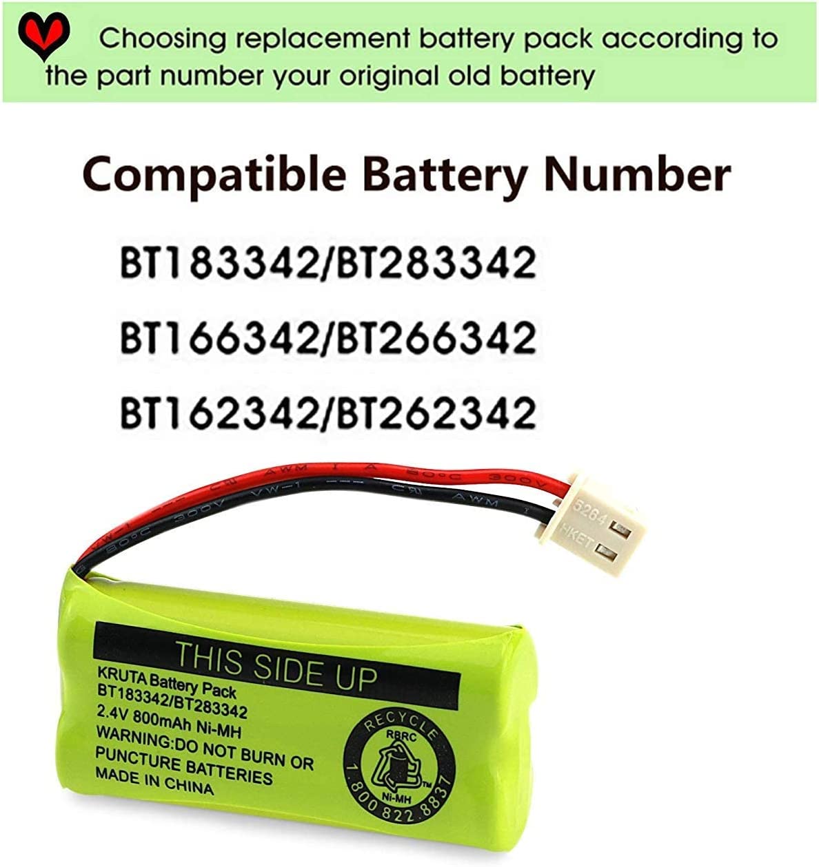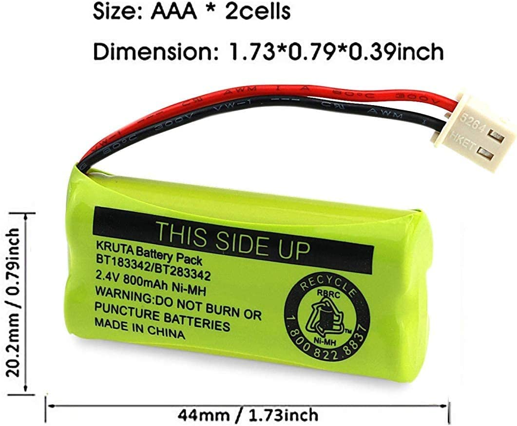 Kruta BT183342 BT283342 BT166342 BT266342 BT162342 BT262342 Battery Compatible with VTech CS6114 CS6419 CS6719 AT&T EL52300 CL80112 VTech CS6719-2 Cordless Handsets (Pack of 2)