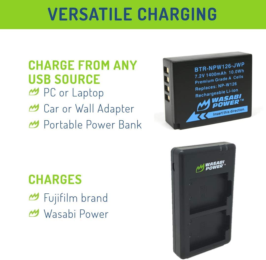 The Wasabi Power KIT-BB-NPW126 includes 2 batteries and one dual USB charger for the Fuji NP-W126 or NP-W126S battery. All items meet or exceed OEM standards and come with a 3-year manufacturer warranty.
