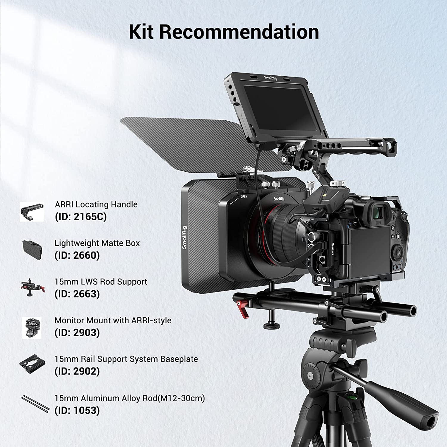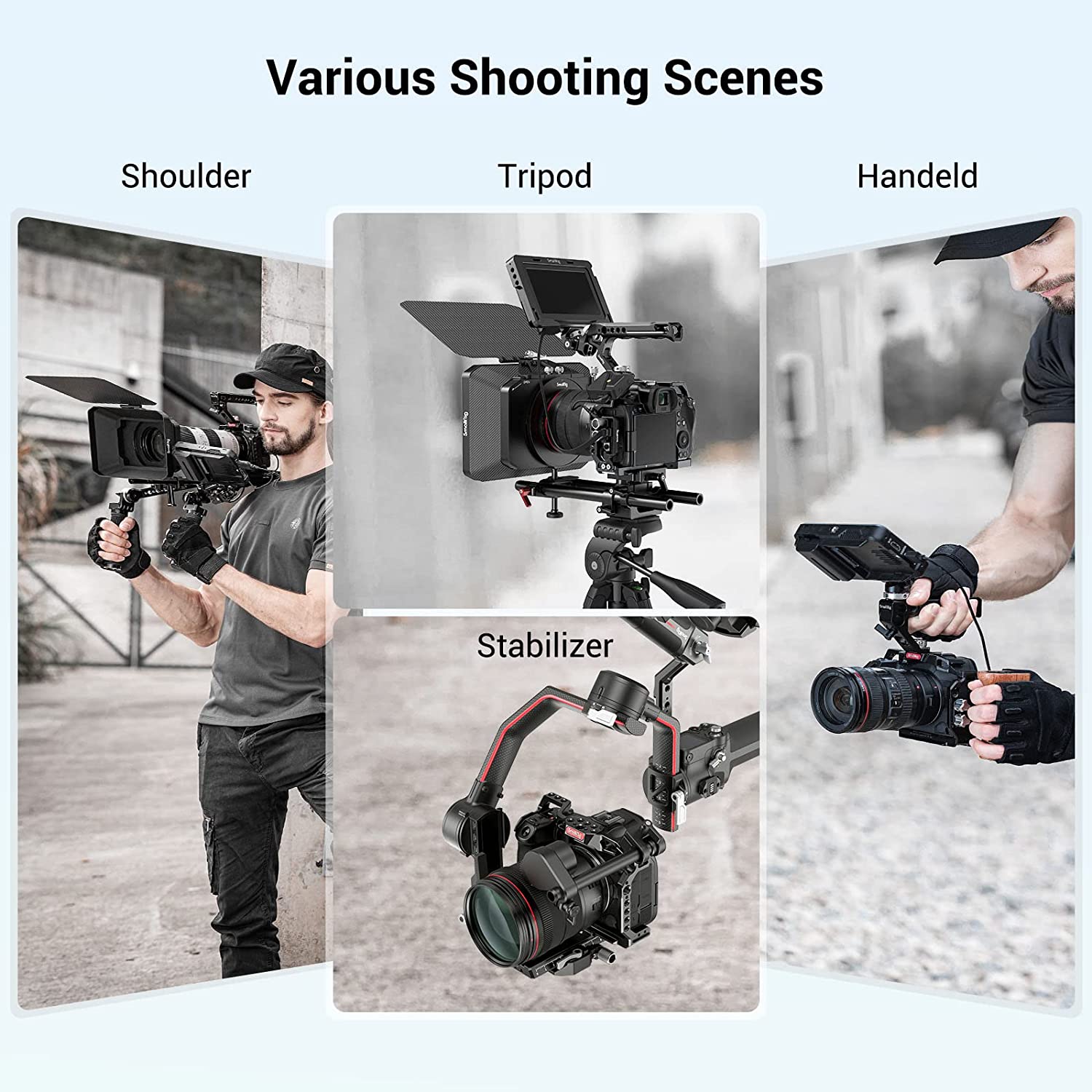 • 【Multiple Mounting Options】Multiple 1/4"-20 and 3/8"-16 threaded holes for attaching such accessories as Side Handle 2093, Top Handle 1984 and Arm with Ball Heads 2070. The top comes with a cold shoe mount for microphones and LED lights. With 3/8"-16 locating holes for ARRI fit Top Handle 2165, Side Handle HSS2426 & 2914