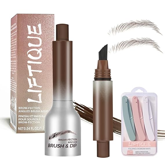 Liftique Brow Brush Angled Brush & Dip Eyebrow Gel, Liquid Eyebrow Brush, Long-Lasting Quick Dry, Hair-like eyebrow pencil, Pressed Wild Brow Pencil (Taupe)