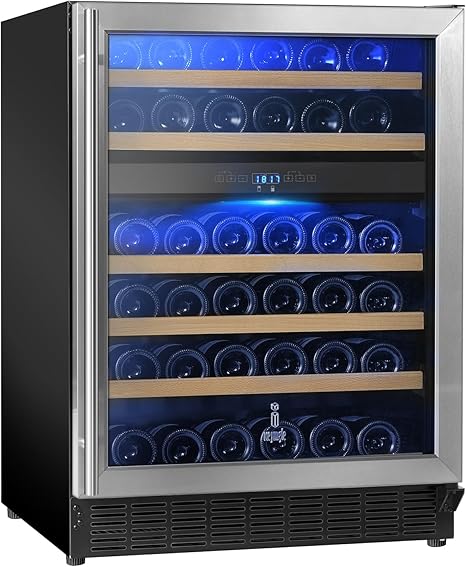 Wine and Beverage Refrigerator-46 Bottle Wine Cooler- Dual Zone, Stainless Steel, Built-in Wine Fridge & Low-Energy Compressor, Dual Temp Control Low-Noise Home Kitchen