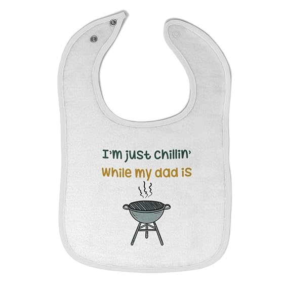 Toddler & Baby Bibs Burp Cloths Dad I'm Just Chillin While My Dad Grilling BBQ Grill Master Cotton Baby Items for Baby Girl & Boy White Design Only