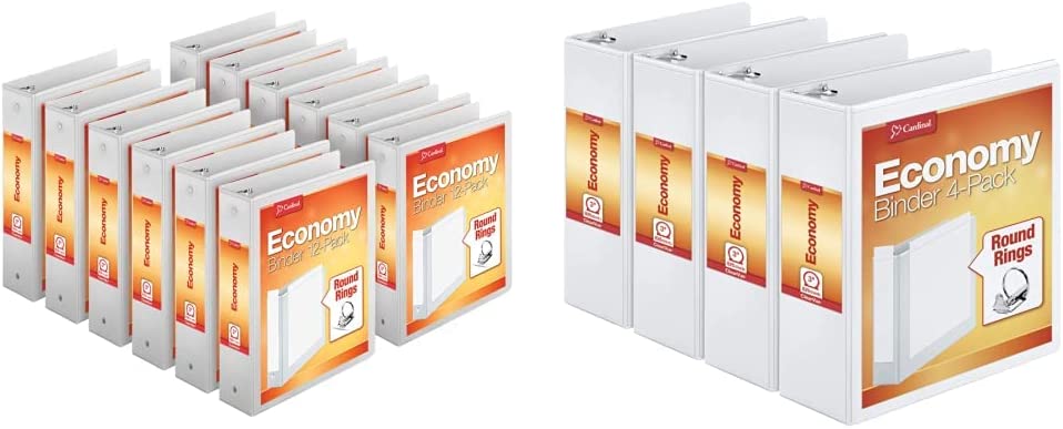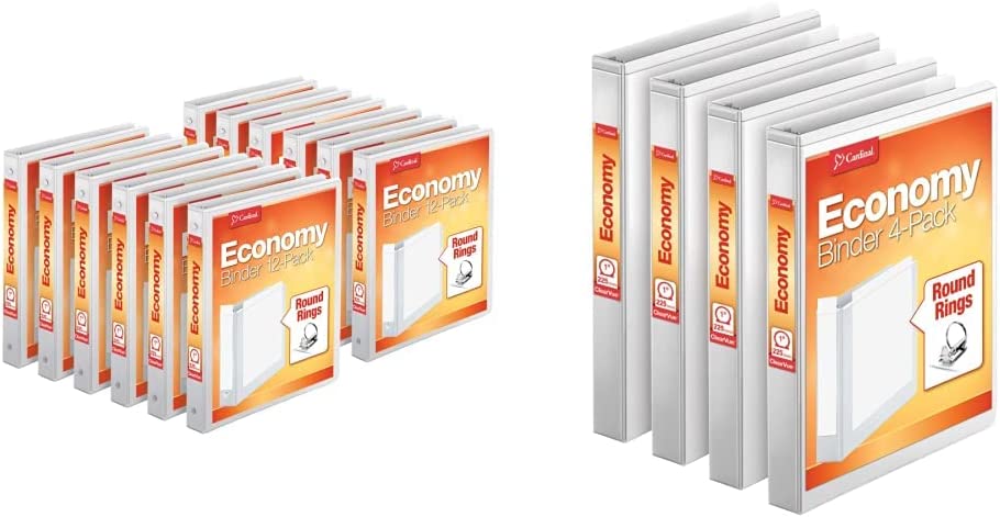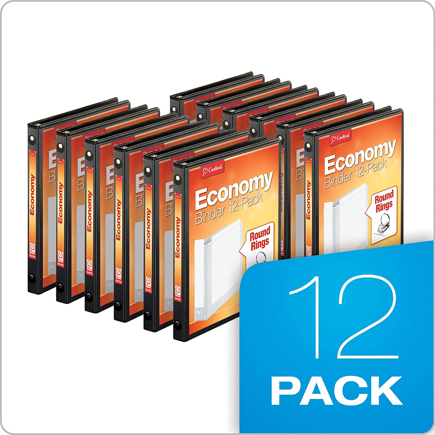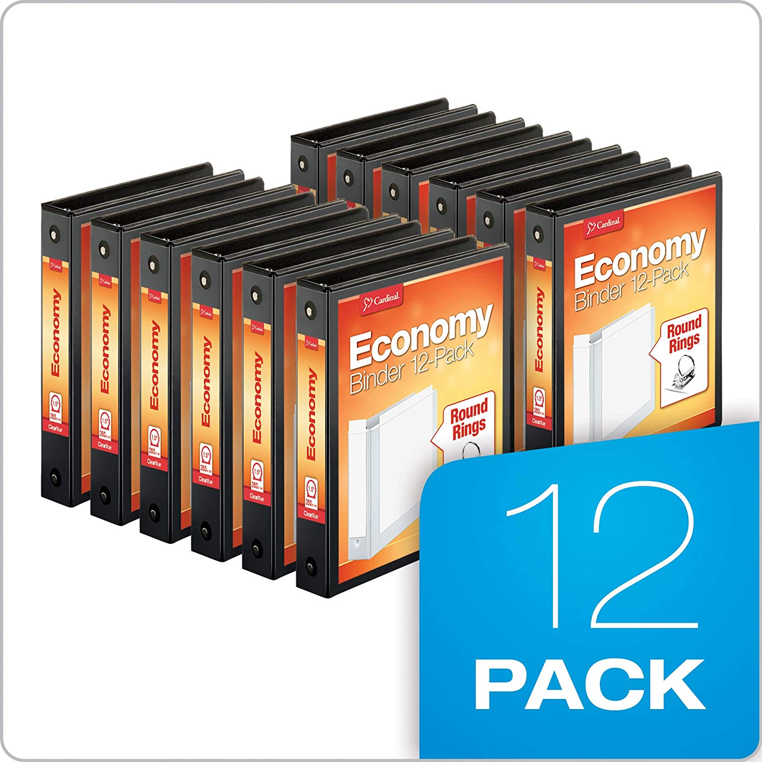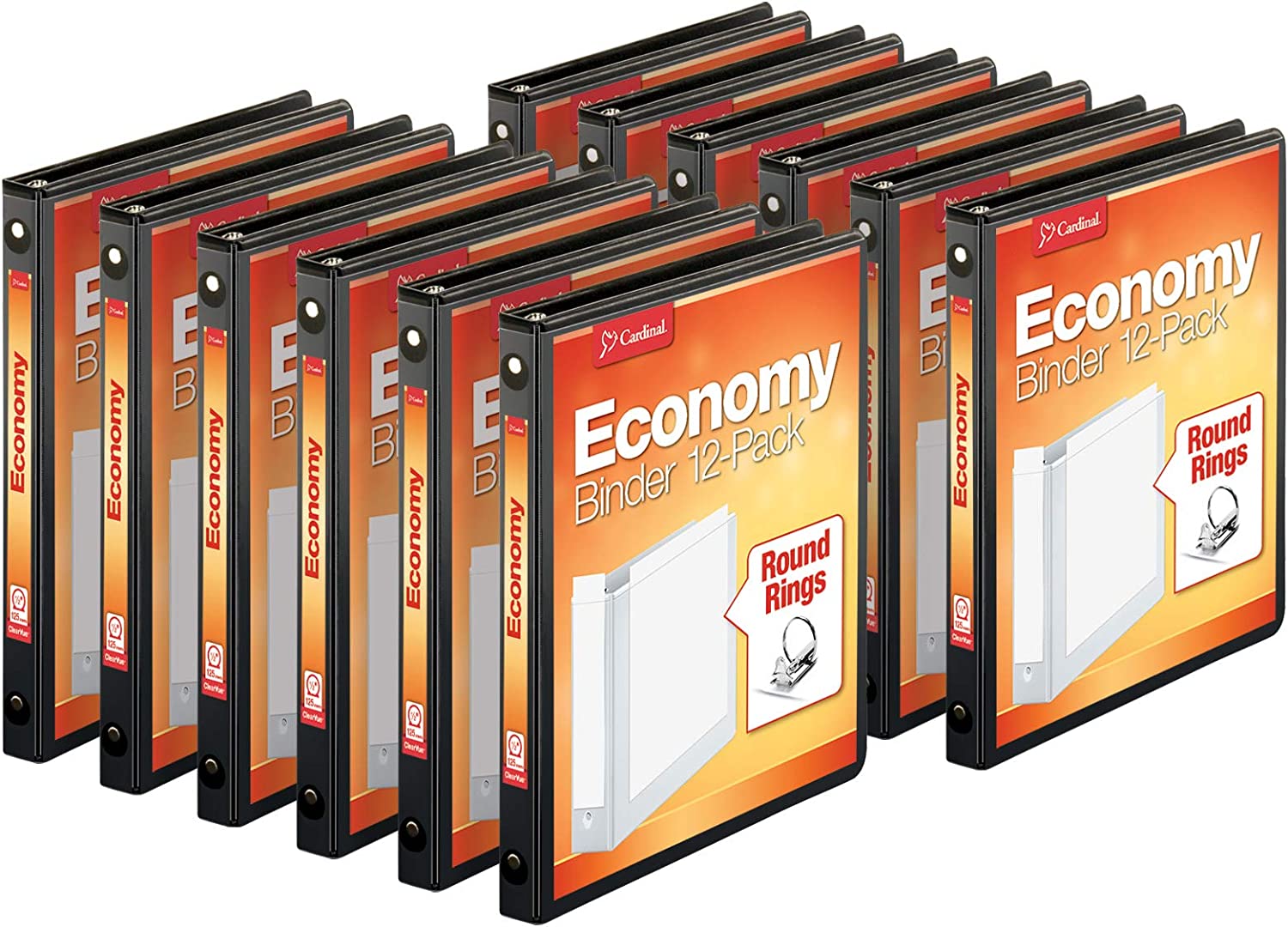 Cardinal Economy 3-ring binders are now available in bulk packs of 12 so you can quickly and easily stock up for the office. These ClearVue presentation binders each have a customizable front, back and spine so what's inside is organized and easy to find. 1". Holds 225 sheets. White. Round rings. Carton of 12. durable hinge: A unique XtraLife hinge helps prevent tearing along cover seams. customizable covers: identify what you need quickly or create a unique look for presentations, proposals and more. extra storage: Each binder has two clear interior pockets for extra unpunched paperwork. recycled content: cover boards made from 100% recycled fiber with at least 98% post-consumer fiber.
