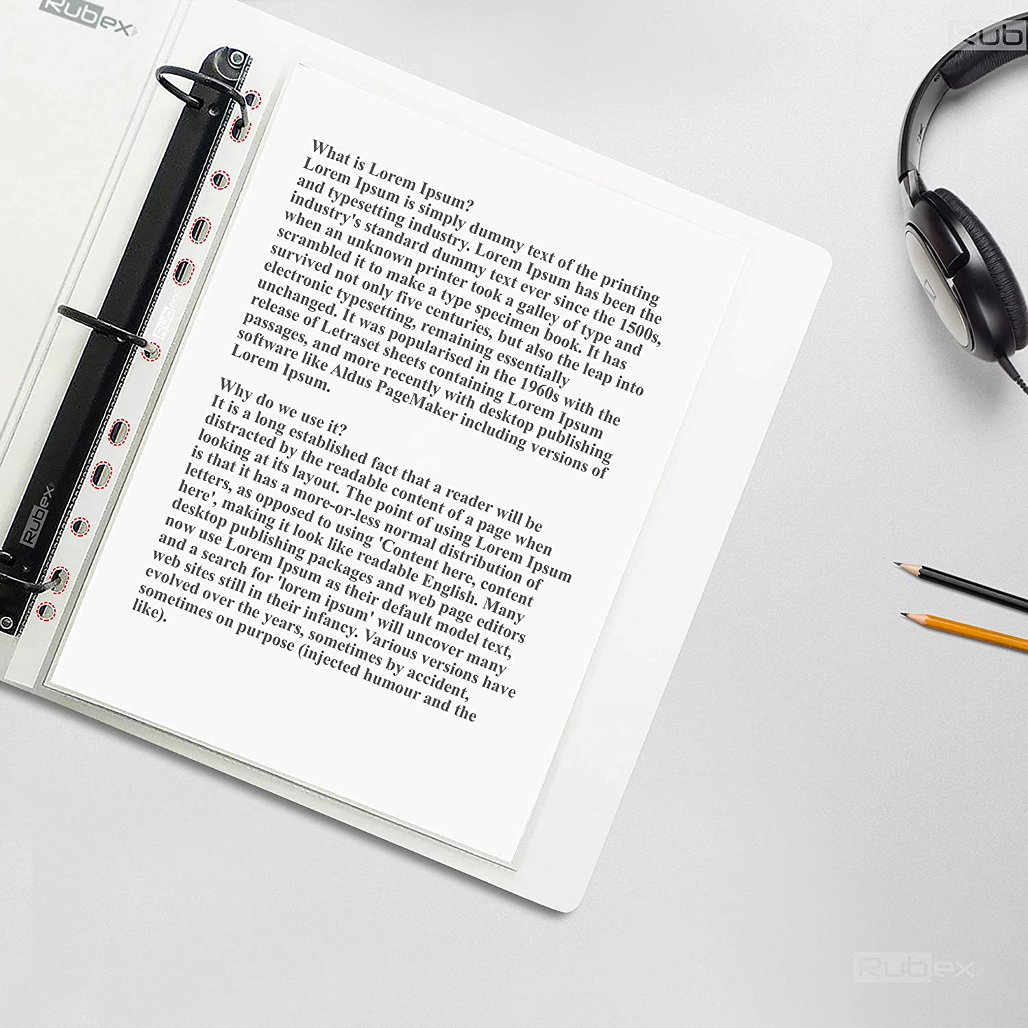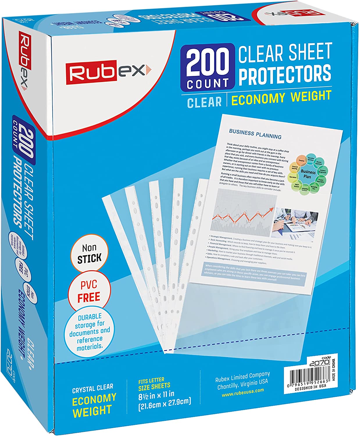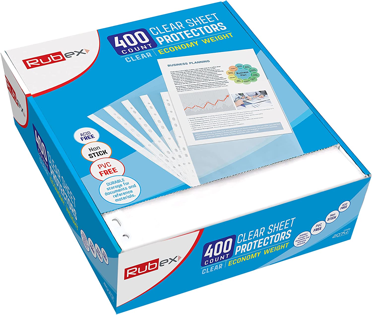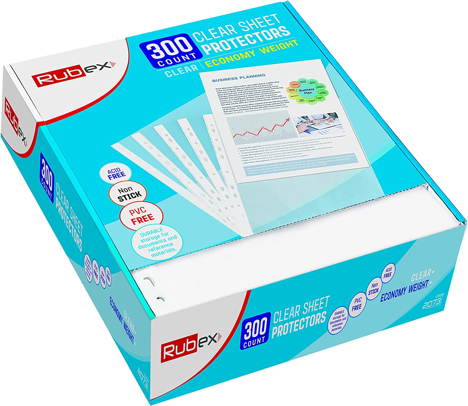• GOOD QUALITY - RUBEX sheet protectors are PVC free, acid free, odor free and made of environmentally safe recyclable polypropylene. Hole line is reinforced with a white polypropylene reinforcement strip for extra strength and durability.
