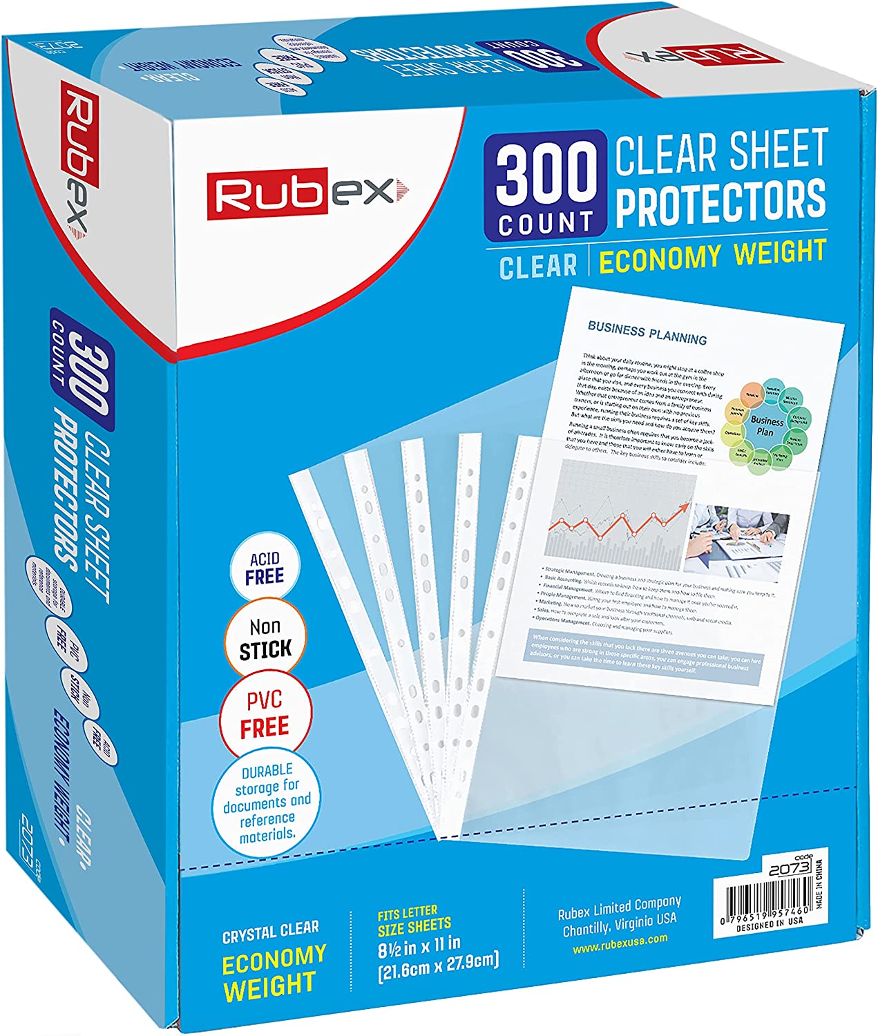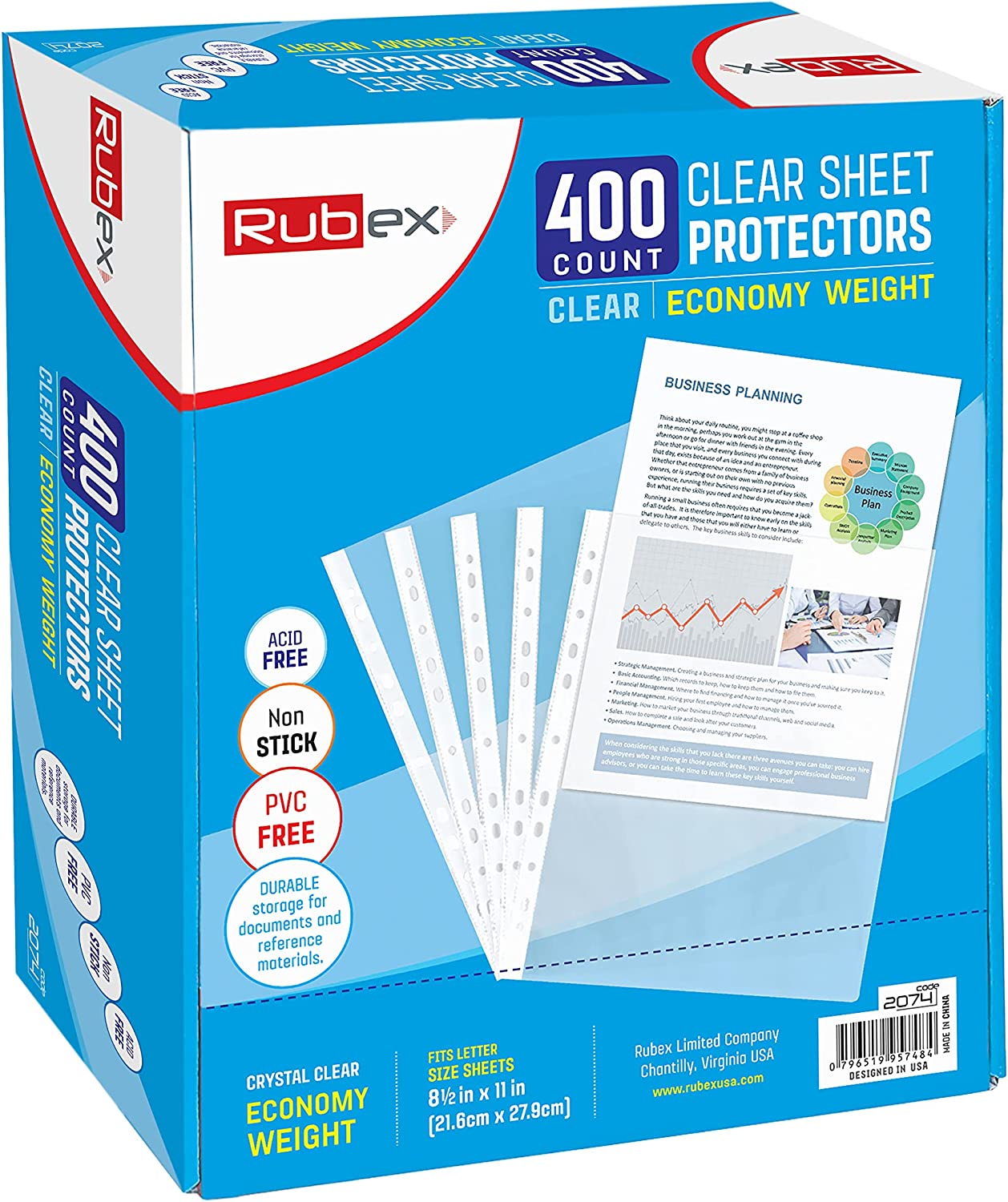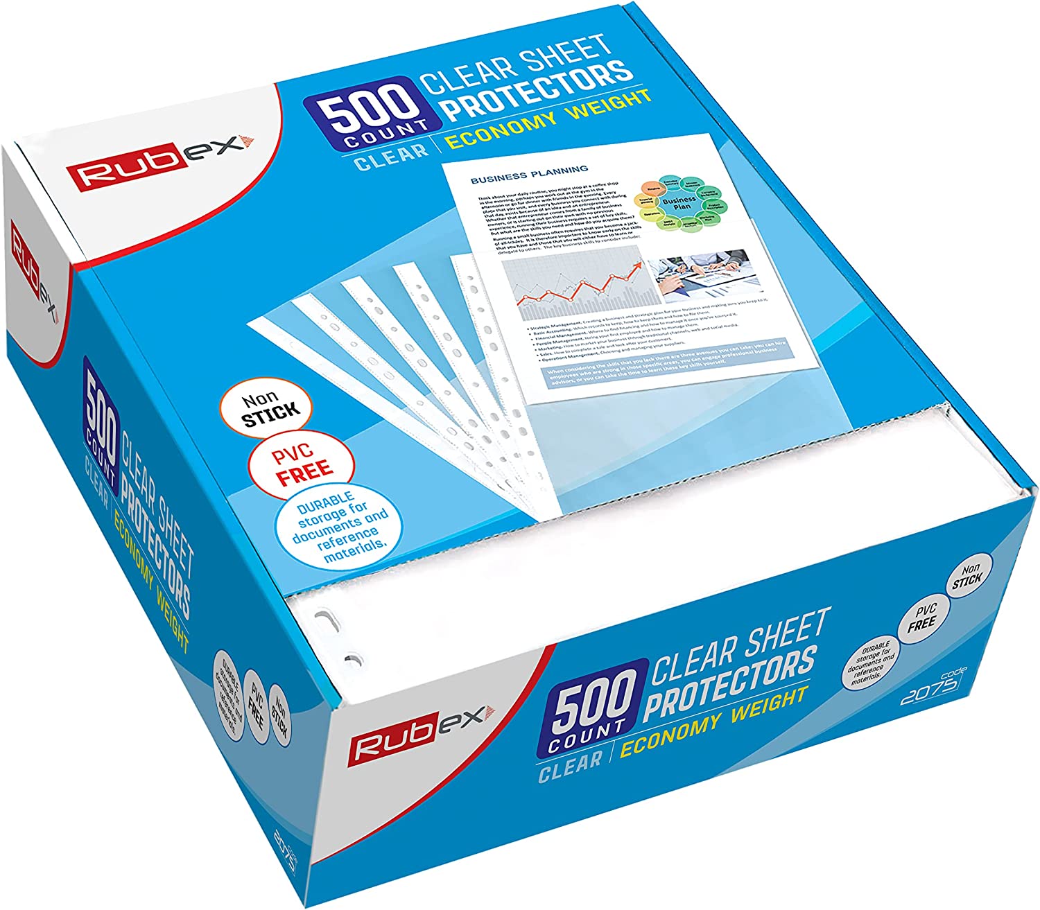 Rubex Sheet Protectors 8.5 x 11 inch Clear Page Protectors Plastic Sleeves Reinforced 11 Hole fit for 3 Ring Binder Top Loading 9.25 x 11.25 inch (500 Sheets)
