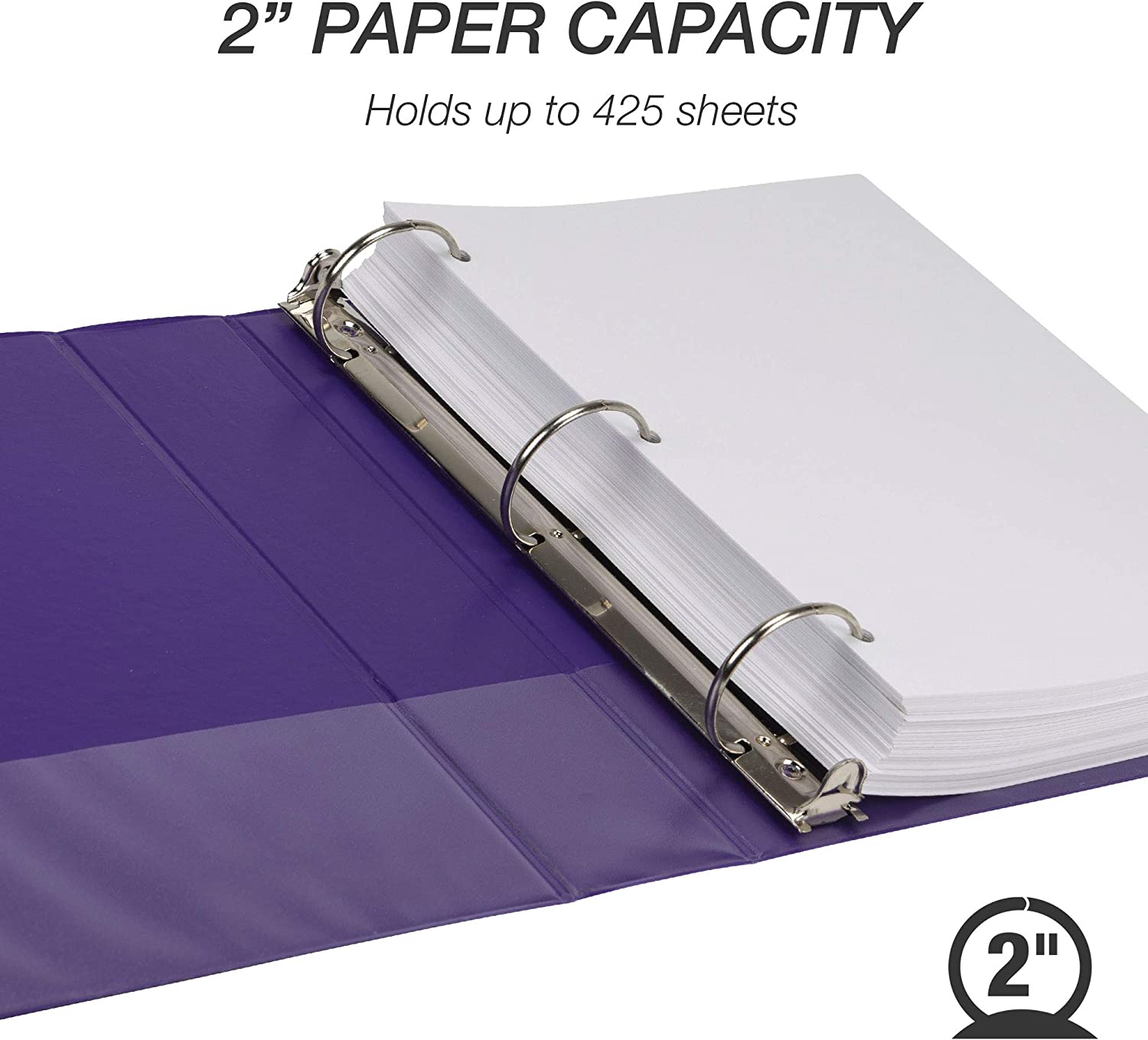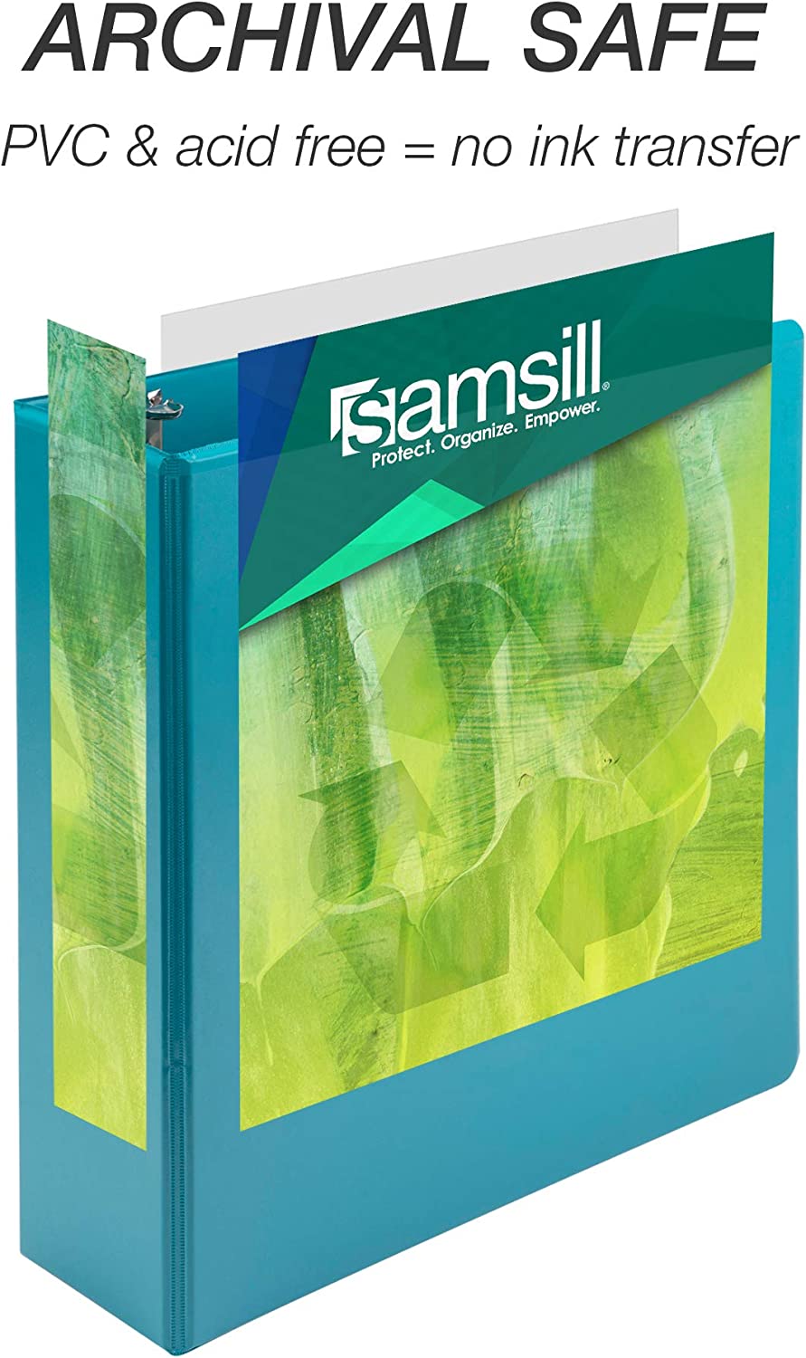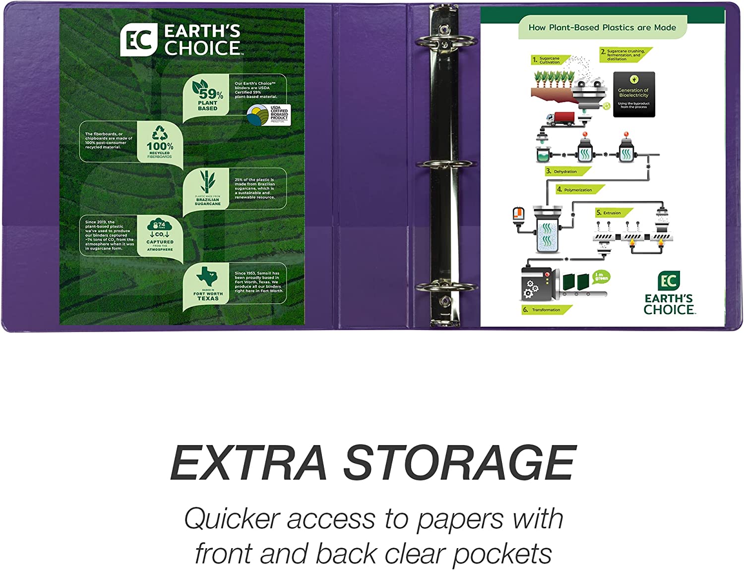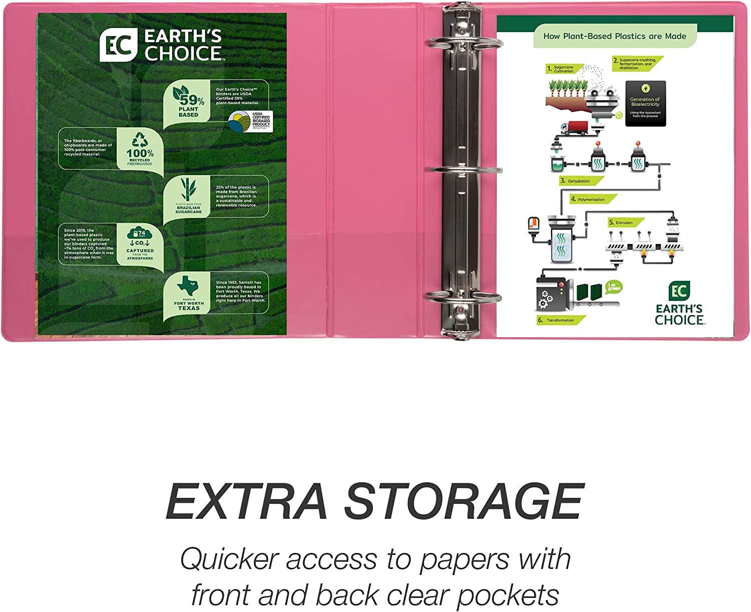 Our three ring binders make indispensable home, office, and school supplies. While there are many binders available, only our plant-based 3 ring binder 2-inch binder set offers the sustainable organization you've been searching for. These binders are made with at least 59% plant-based material and come with a cover made with up to 25% plant-based renewable plastic. The durable chipboard is made from 100% recycled material and a minimum of 98% post-consumer content. Plant-based content is carefully tested using ASTM D-6866 standards. Each important document binder features a clear overlay along the front, back, and spine, allowing you to customize your presentations, projects, and more. A non-stick polypropylene cover adds durability and effectively prevents the transfer of ink or lifting of copy when materials are inserted into the cover or placed inside. The rings are mounted on the back lid, allowing pages to lay flat while also preventing wear and tear on documents. Two clear interior pockets provide additional storage with enough space for notes, photos, business cards, or full-size pages. Get crafty and create a baseball card binder, portfolio binder, recipe binder, trading card binder, savings binder, etc. The possibilities are endless!