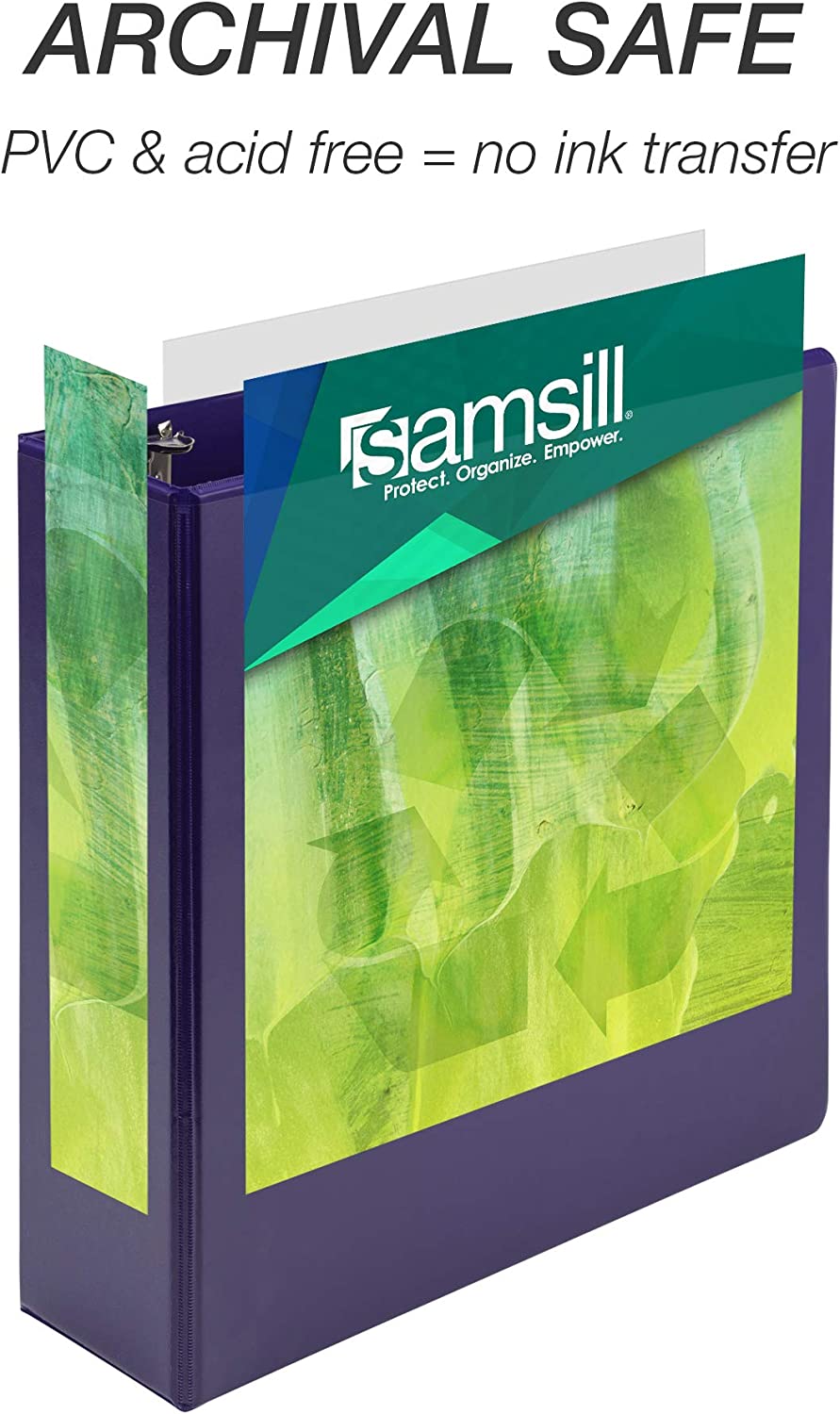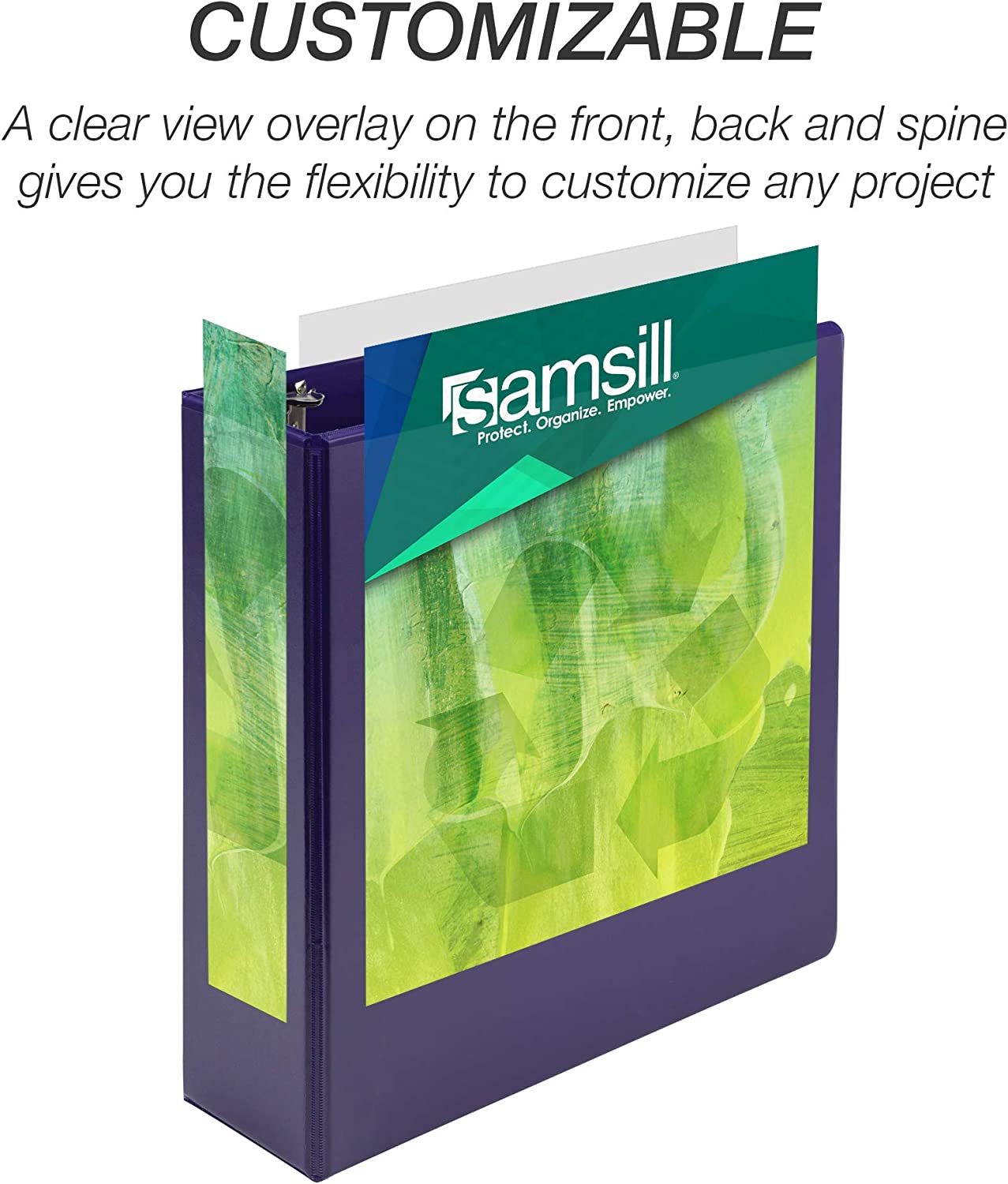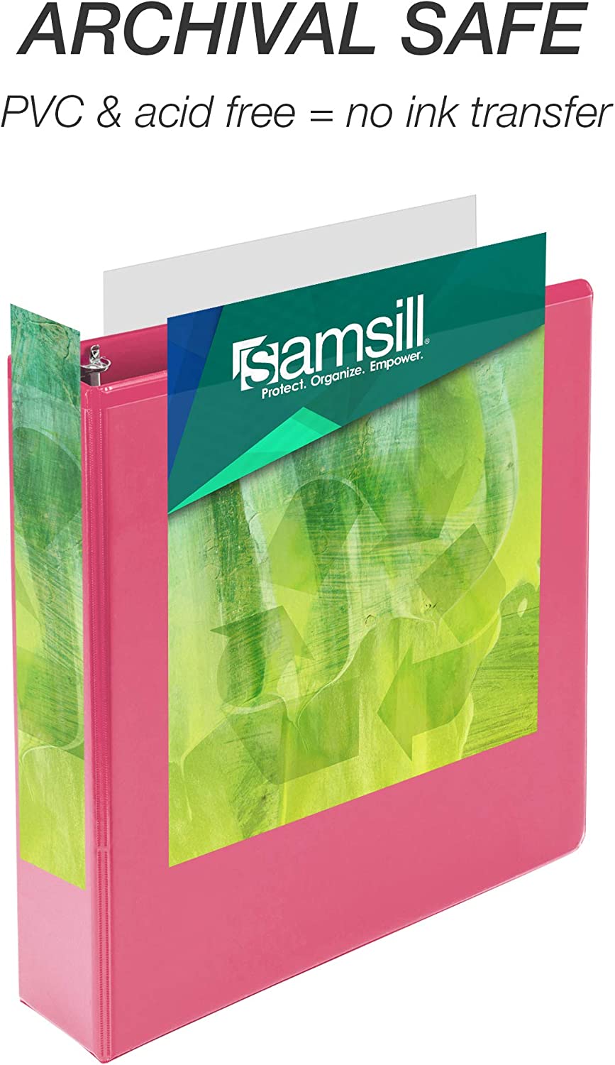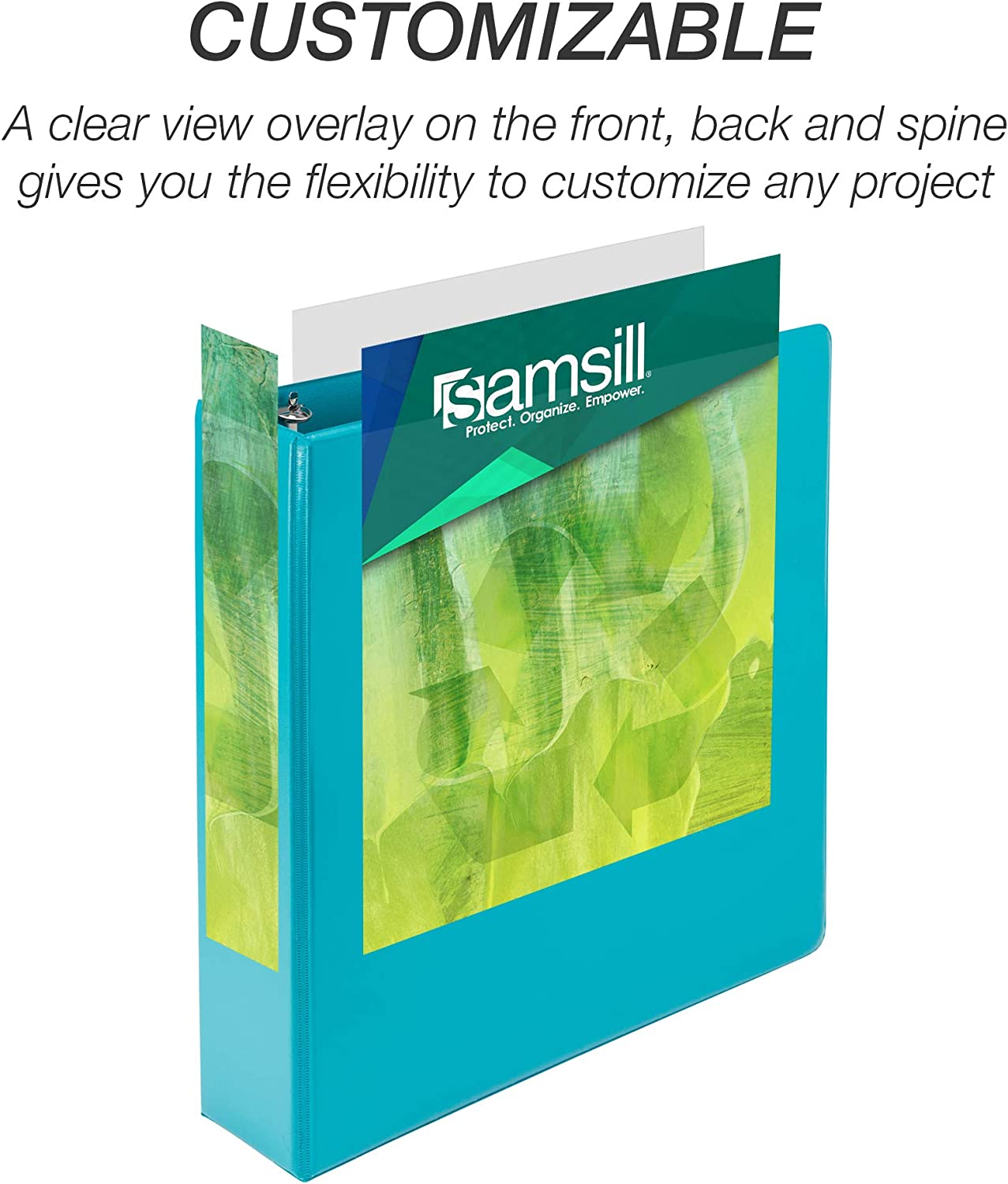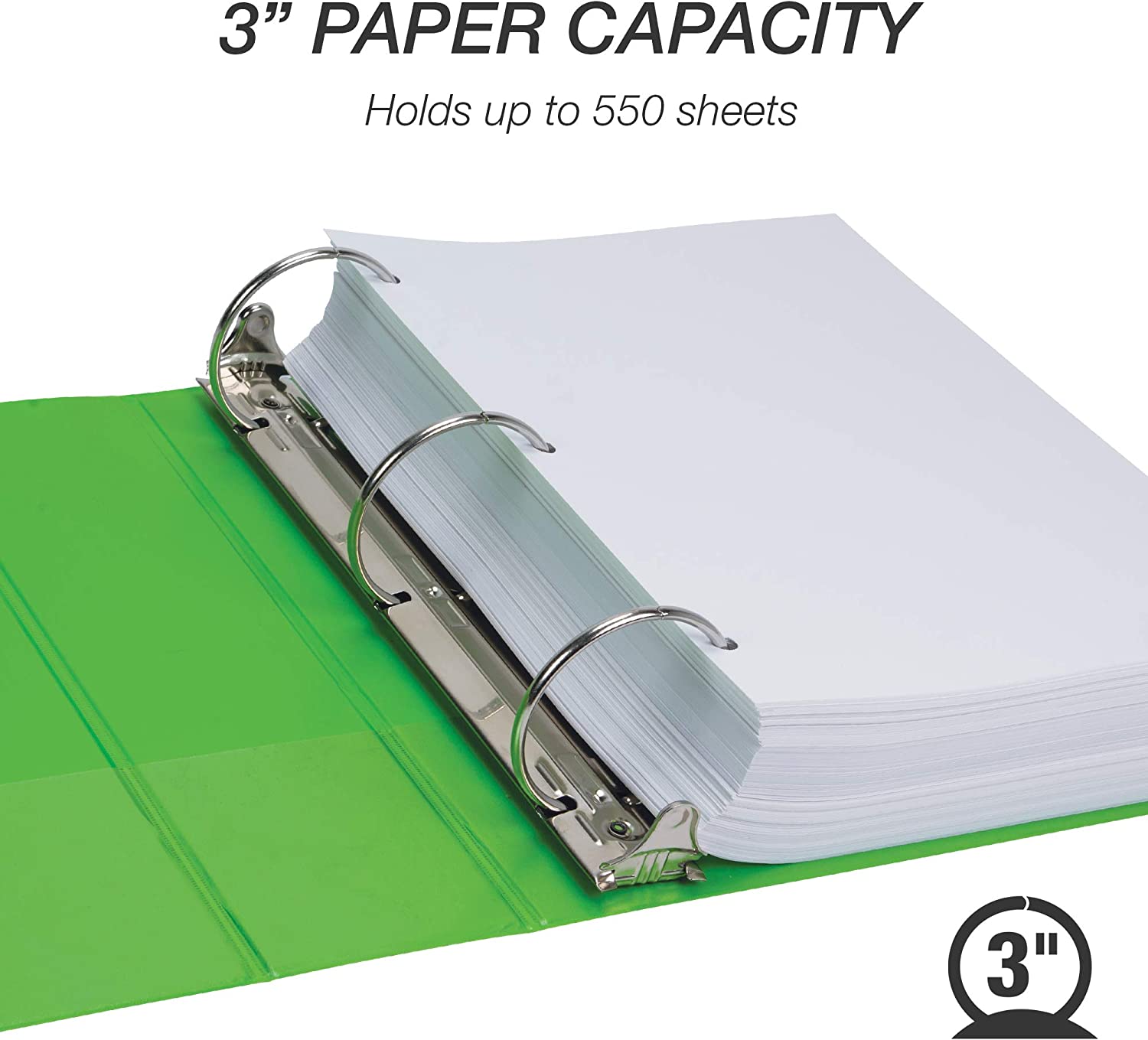 Our three ring binders make indispensable home, office, and school supplies. While there are many binders available, only our plant-based 3 ring binder 2-inch binder set offers the sustainable organization you've been searching for. These binders are made with at least 59% plant-based material and come with a cover made with up to 25% plant-based renewable plastic. The durable chipboard is made from 100% recycled material and a minimum of 98% post-consumer content. Plant-based content is carefully tested using ASTM D-6866 standards. Each important document binder features a clear overlay along the front, back, and spine, allowing you to customize your presentations, projects, and more. A non-stick polypropylene cover adds durability and effectively prevents the transfer of ink or lifting of copy when materials are inserted into the cover or placed inside. The rings are mounted on the back lid, allowing pages to lay flat while also preventing wear and tear on documents. Two clear interior pockets provide additional storage with enough space for notes, photos, business cards, or full-size pages. Get crafty and create a baseball card binder, portfolio binder, recipe binder, trading card binder, savings binder, etc. The possibilities are endless!