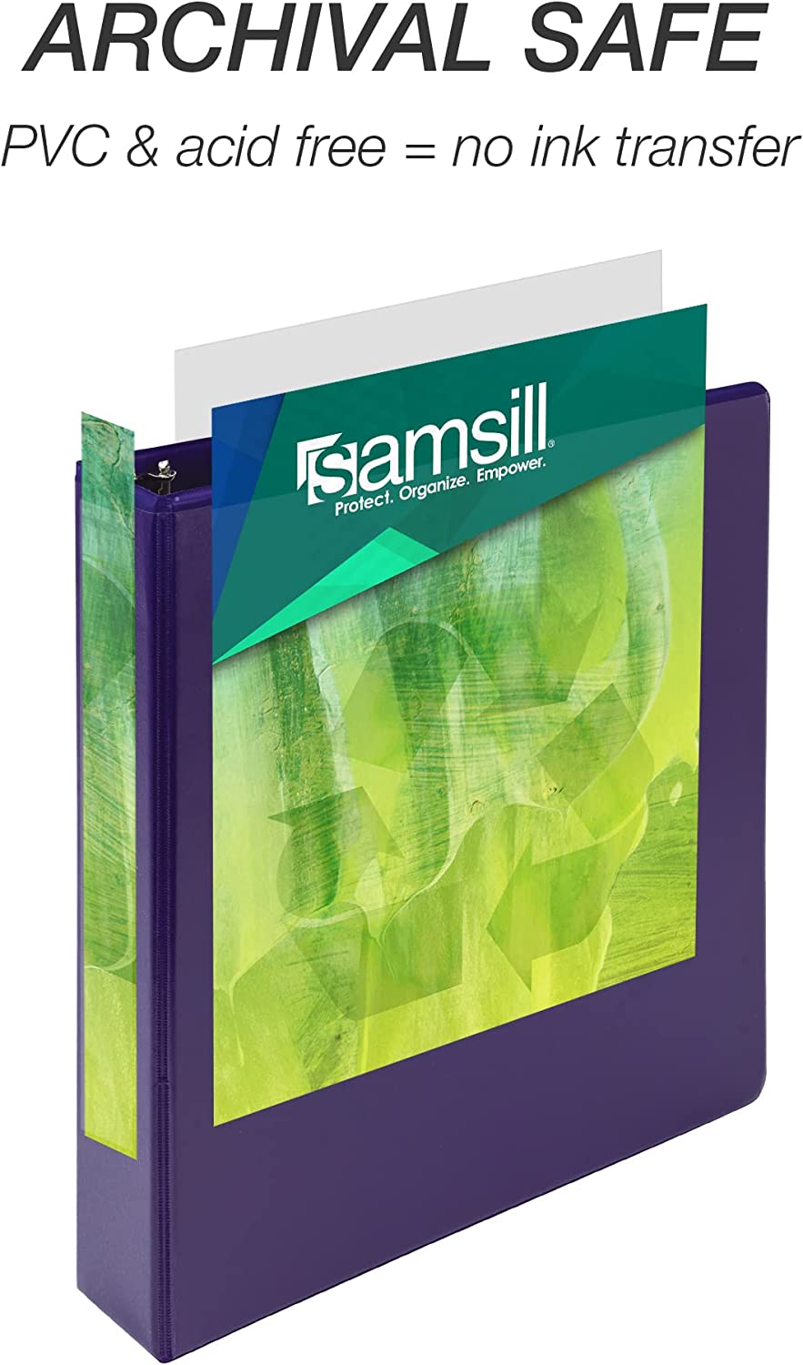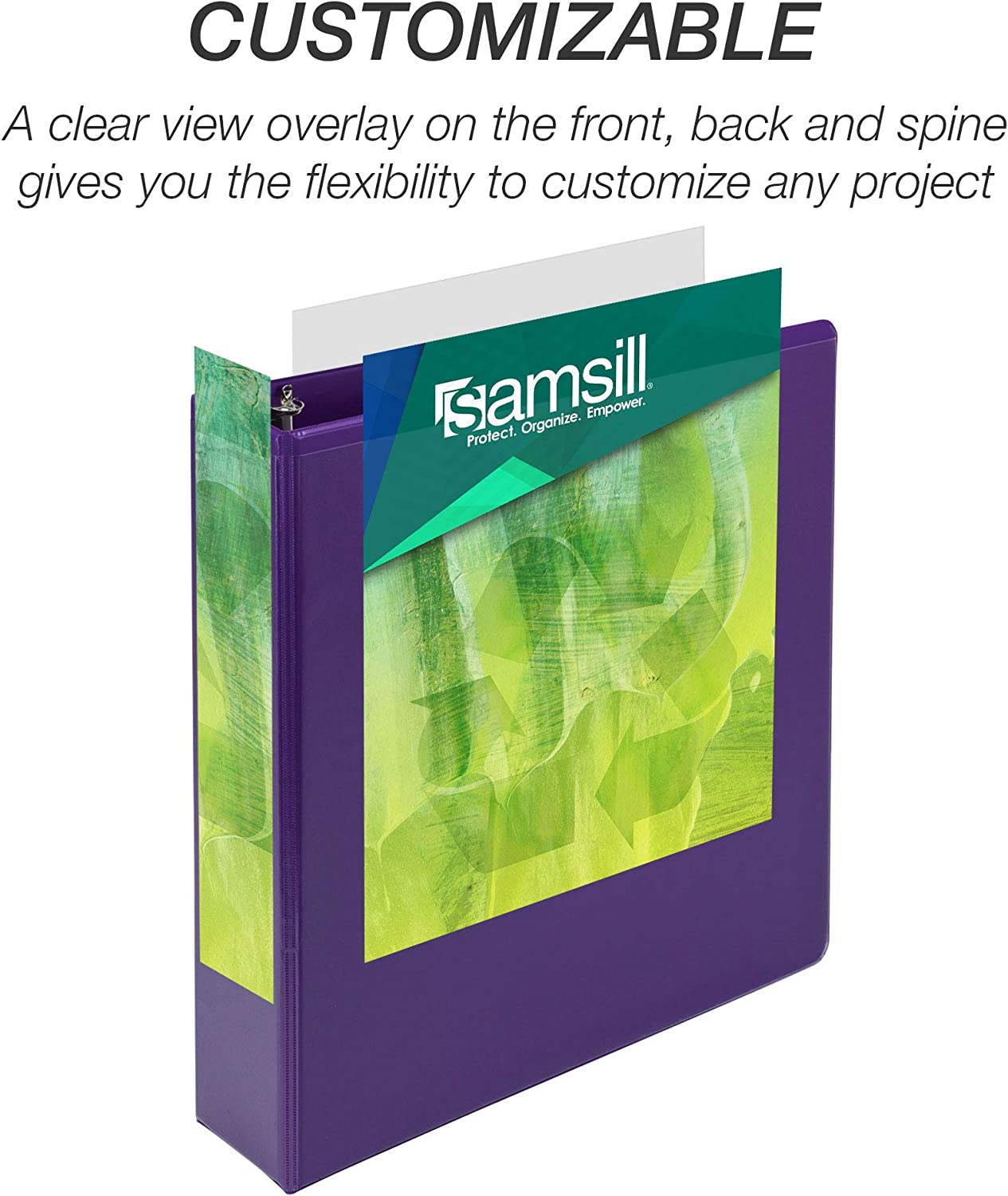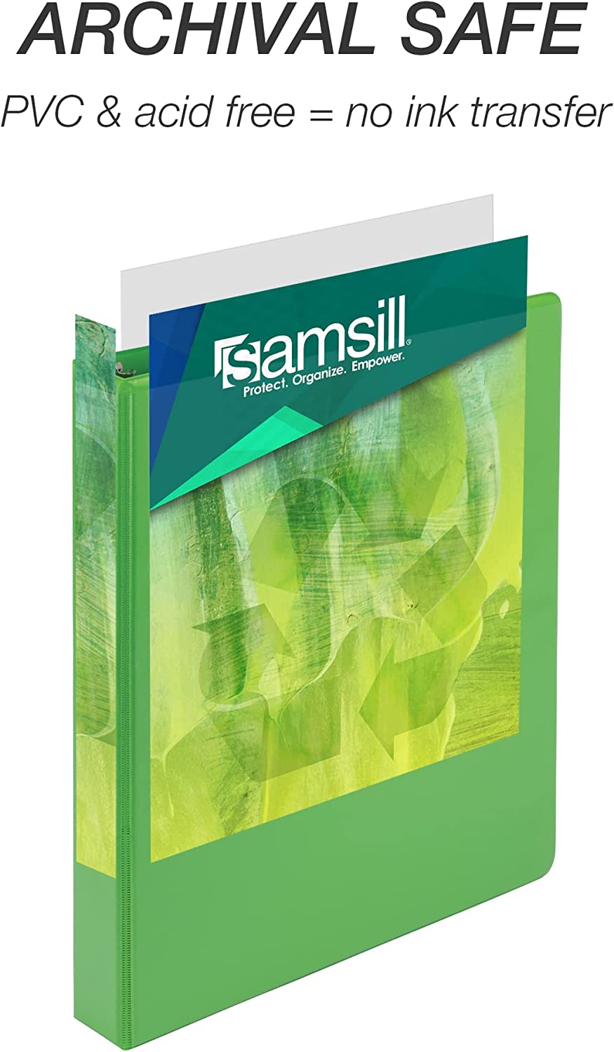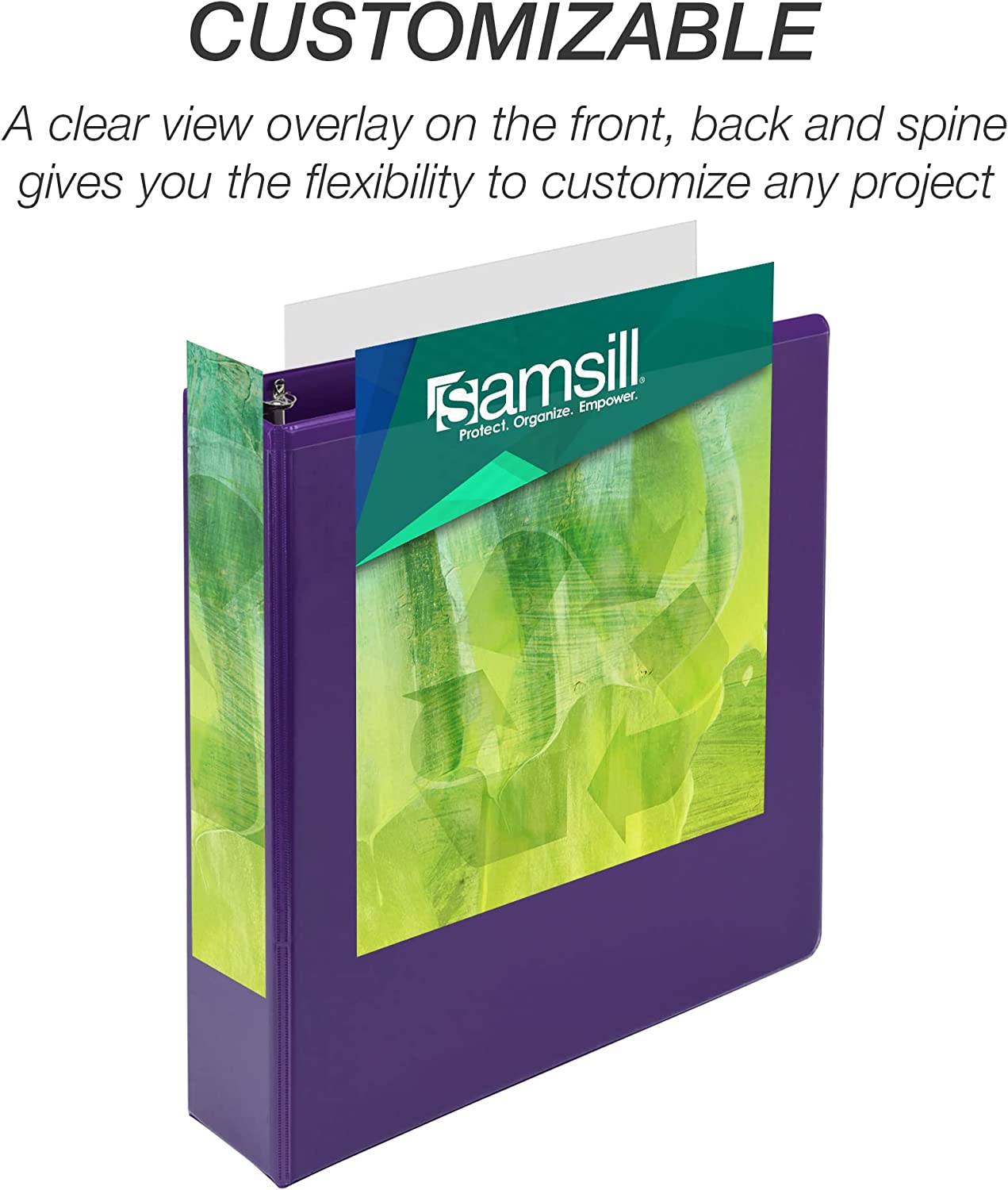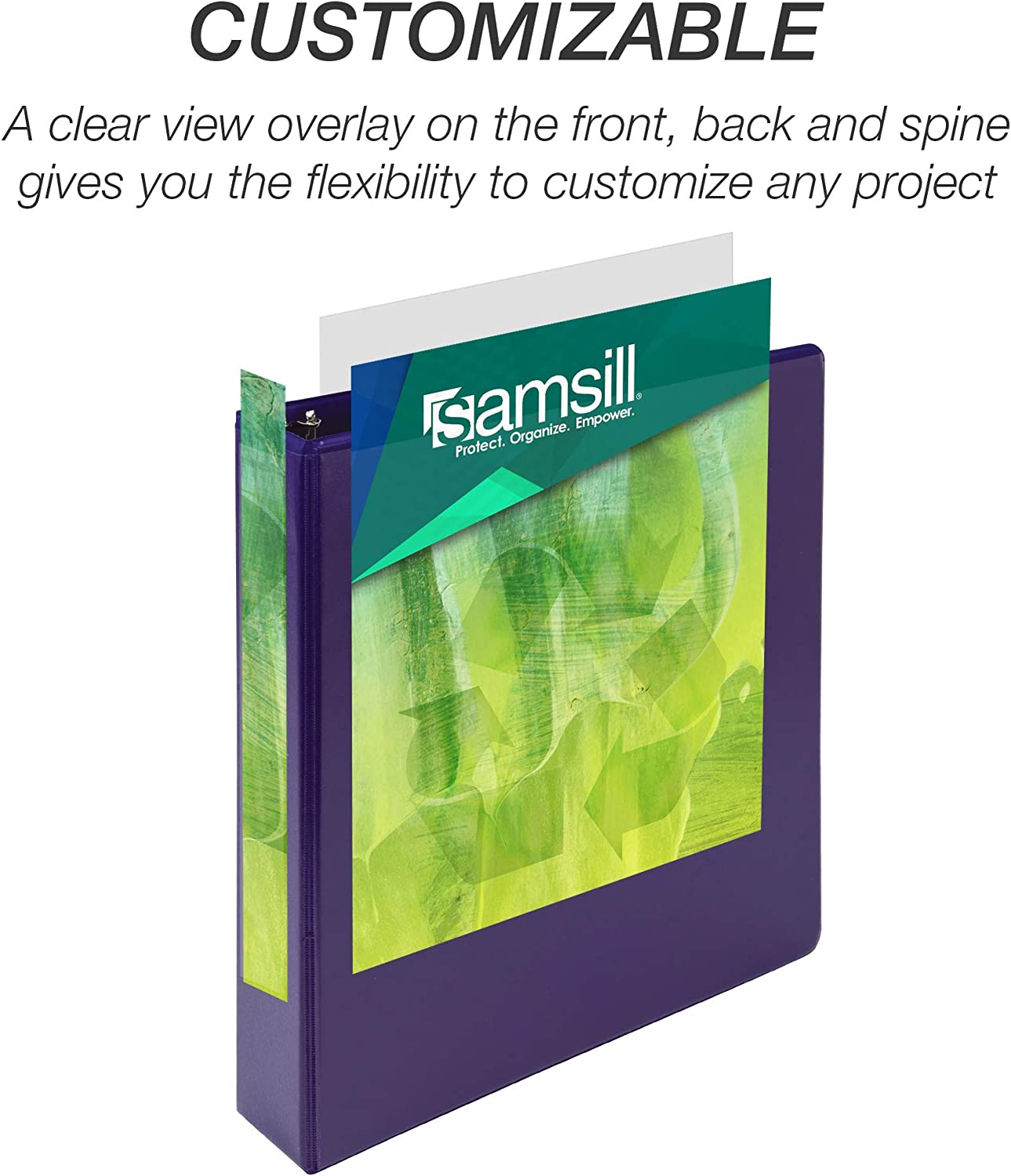 Our three ring binders make indispensable home, office, and school supplies. While there are many binders available, only our plant-based 3 ring binder 2-inch binder set offers the sustainable organization you've been searching for. These binders are made with at least 59% plant-based material and come with a cover made with up to 25% plant-based renewable plastic. The durable chipboard is made from 100% recycled material and a minimum of 98% post-consumer content. Plant-based content is carefully tested using ASTM D-6866 standards. Each important document binder features a clear overlay along the front, back, and spine, allowing you to customize your presentations, projects, and more. A non-stick polypropylene cover adds durability and effectively prevents the transfer of ink or lifting of copy when materials are inserted into the cover or placed inside. The rings are mounted on the back lid, allowing pages to lay flat while also preventing wear and tear on documents. Two clear interior pockets provide additional storage with enough space for notes, photos, business cards, or full-size pages. Get crafty and create a baseball card binder, portfolio binder, recipe binder, trading card binder, savings binder, etc. The possibilities are endless!