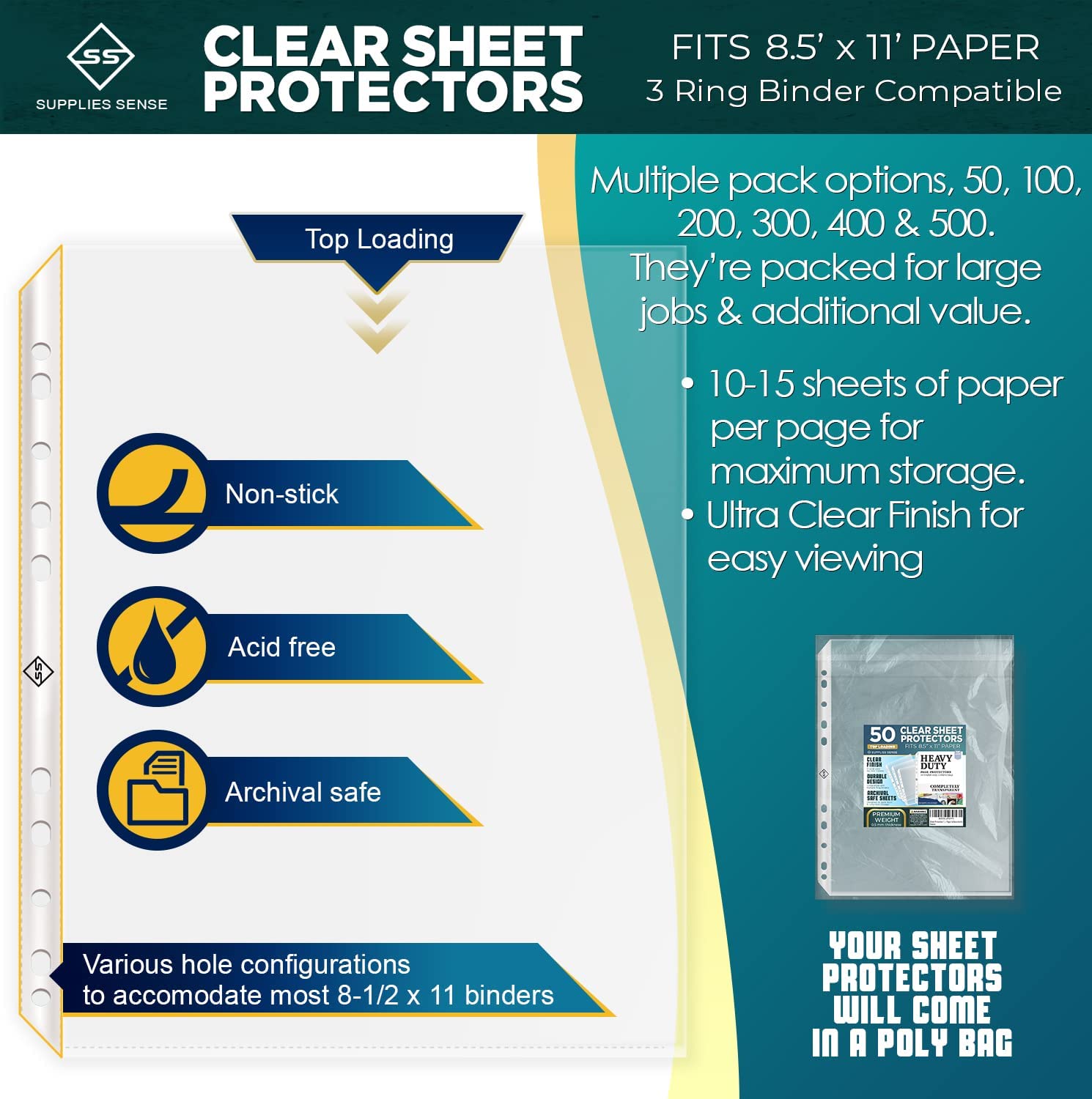 • Heavy Duty All Day & Night! Strong, durable, everyday use protector sheets 8.5 x 11. Creating an effortless plus smooth storage & office organization experience. Even at home or school, our sheet pages will come in handy. You can use these sheets to make your ultimate photocard binder, recipe binder & even family scrapbooks. Today is a good day to get even more organized.