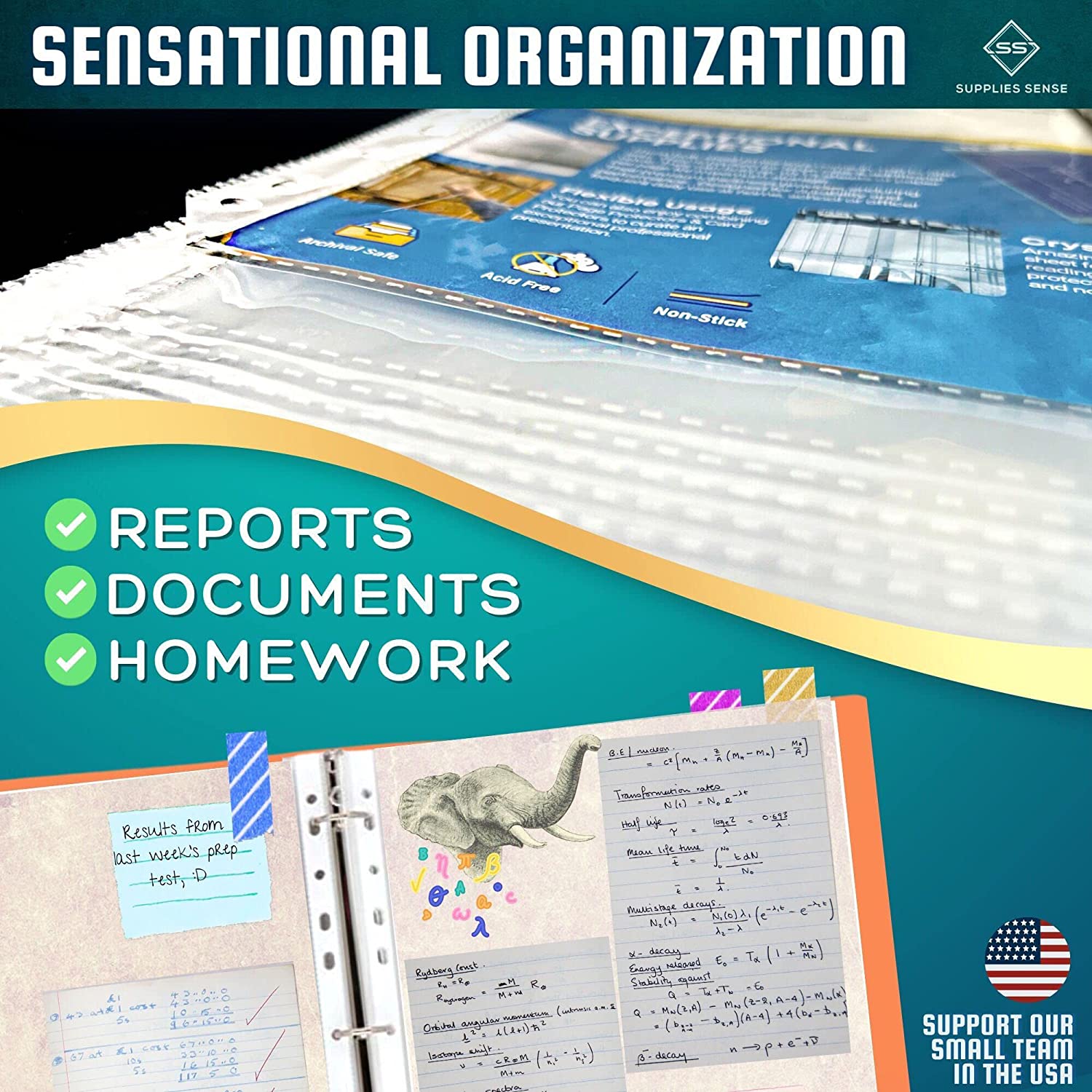 • Supplies-ingly Handy! We can make things easier for your organizational needs for office supplies or school supplies. Each sheet can hold up to 10-15 sheets of printing paper 8.5 x 11" (A4 size paper). Our sets are jam-packed with high-quality, crystal clear & durable page protectors suitable for everyday use. Great bulk sheet protectors you can use for a very, very long time of safe and secure storage, documentation and archiving. Goes perfectly with A4 binders too!