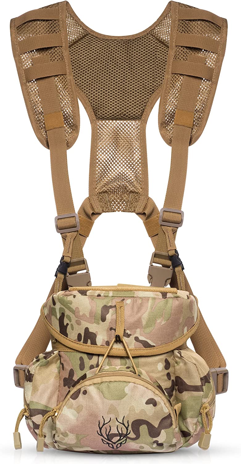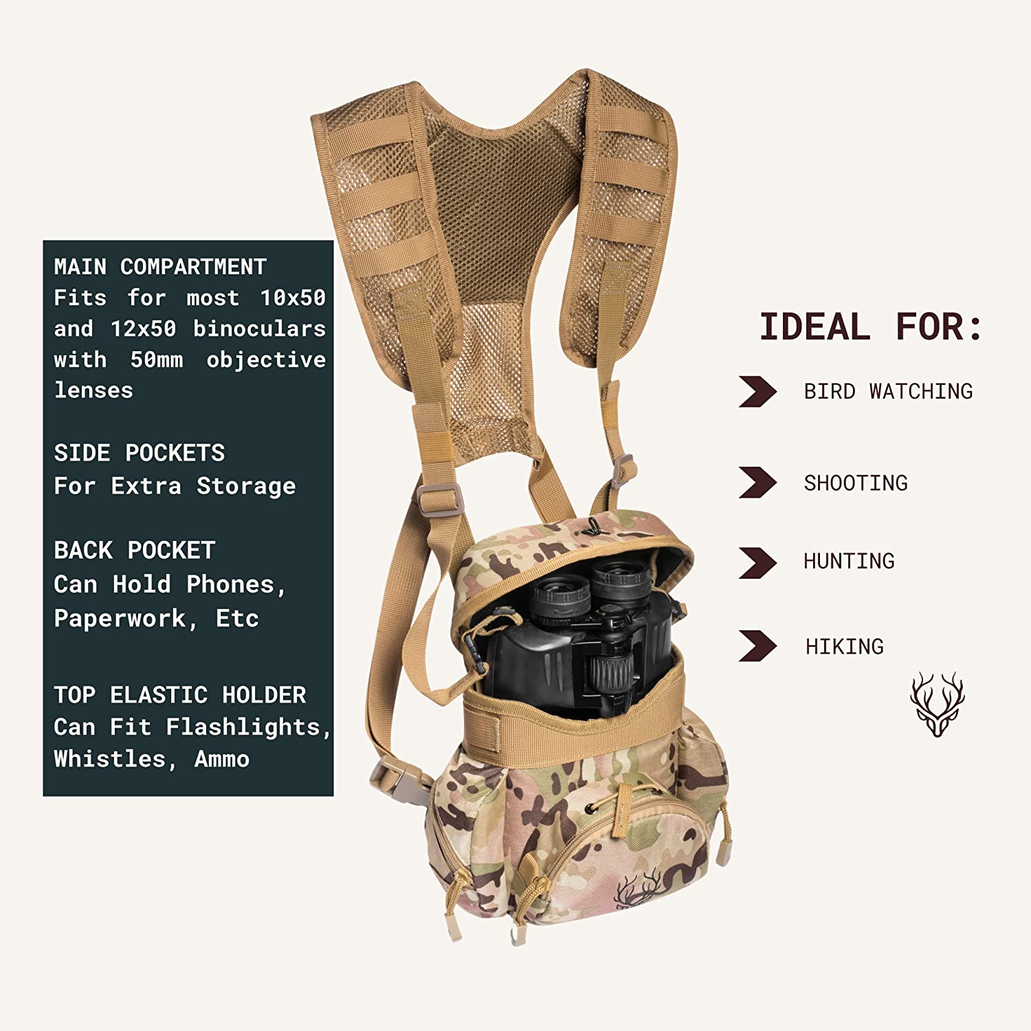 Boundless Performance Binocular Harness Chest Pack - Our Bino harness case is great for hunting, hiking, and shooting - Bino straps secure your binoculars-holds rangefinders, bullets, gear - Multicam