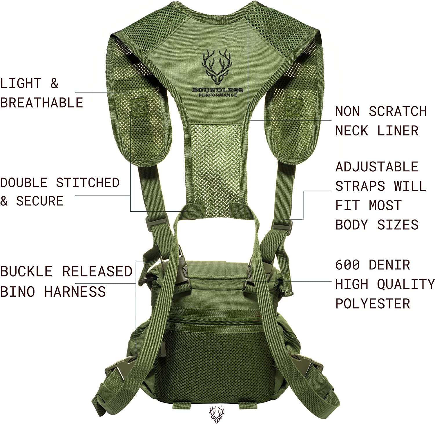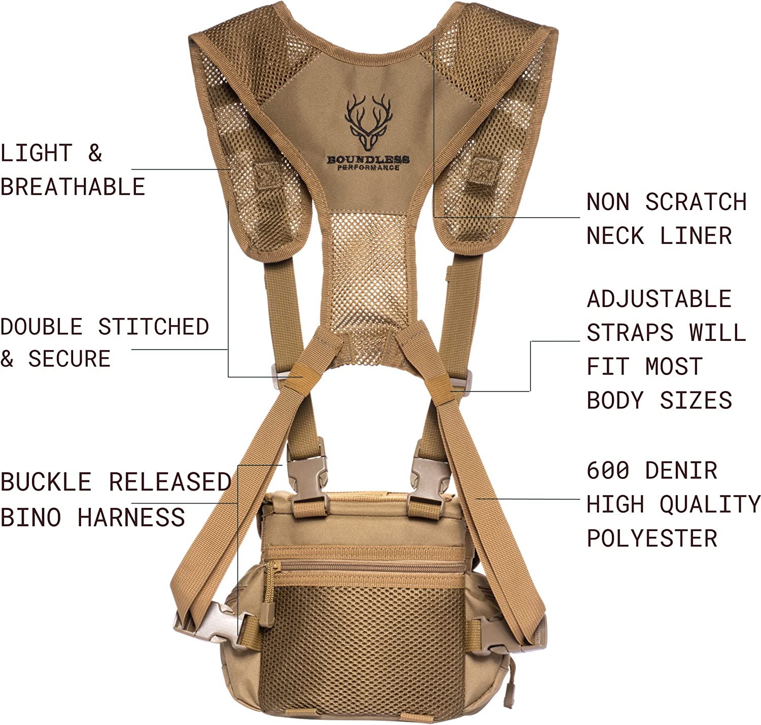 Binocular Harness Chest Pack for Men and Women - Our Bino Harness and case is Great for Hunting, Hiking, and Shooting - Bino Straps Secure Your Binoculars - Holds rangefinders, Phones, Bullets, ect