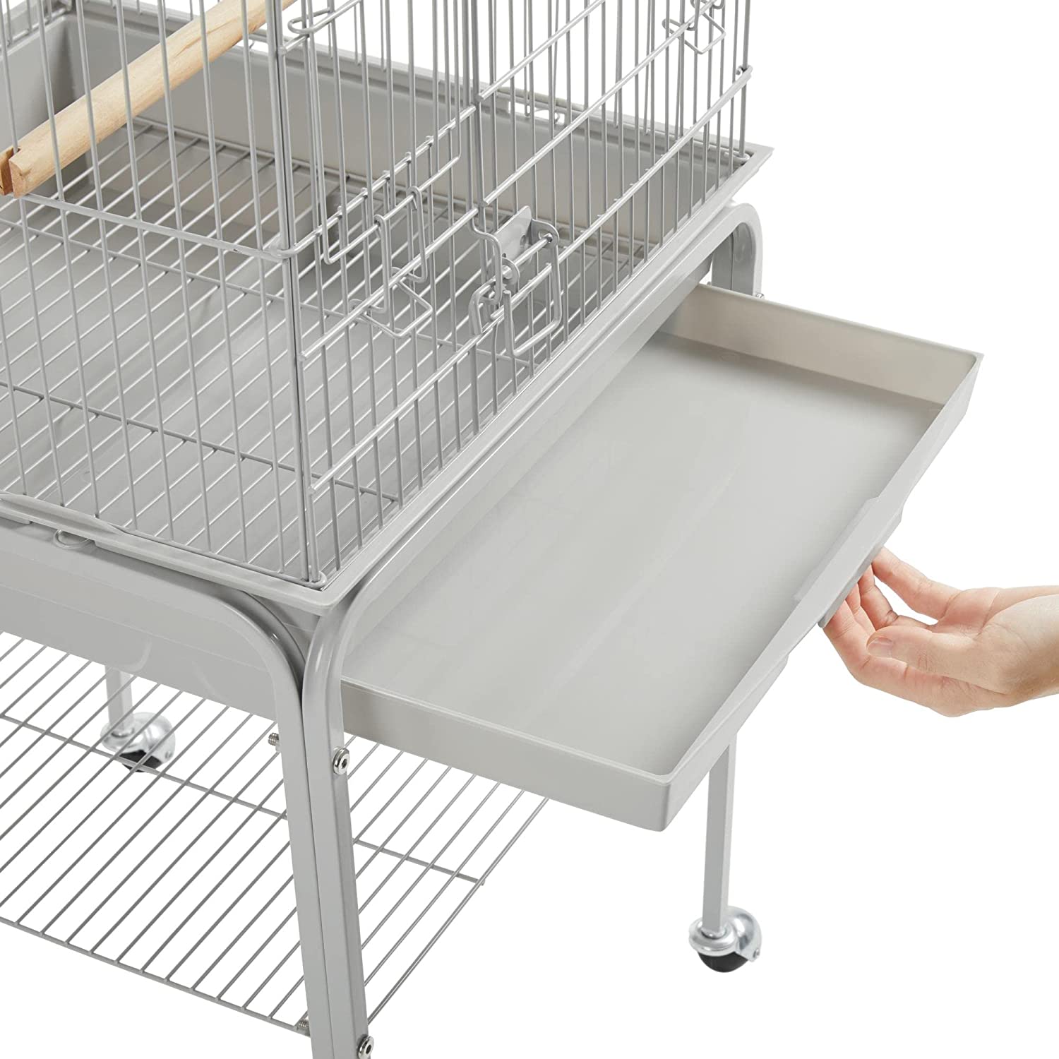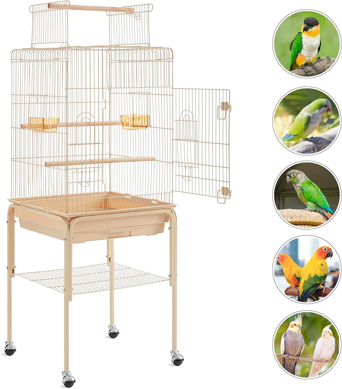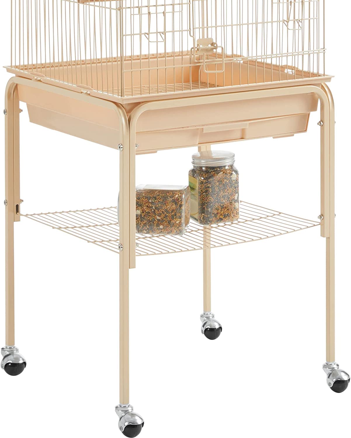 • 【EXTRA ACCESSORY STORAGE】: Another thoughtful design for pet parents is the extra storage shelf on the stand. It can keep bird cage cleaning tools, bird seeds and toys handy and neat.