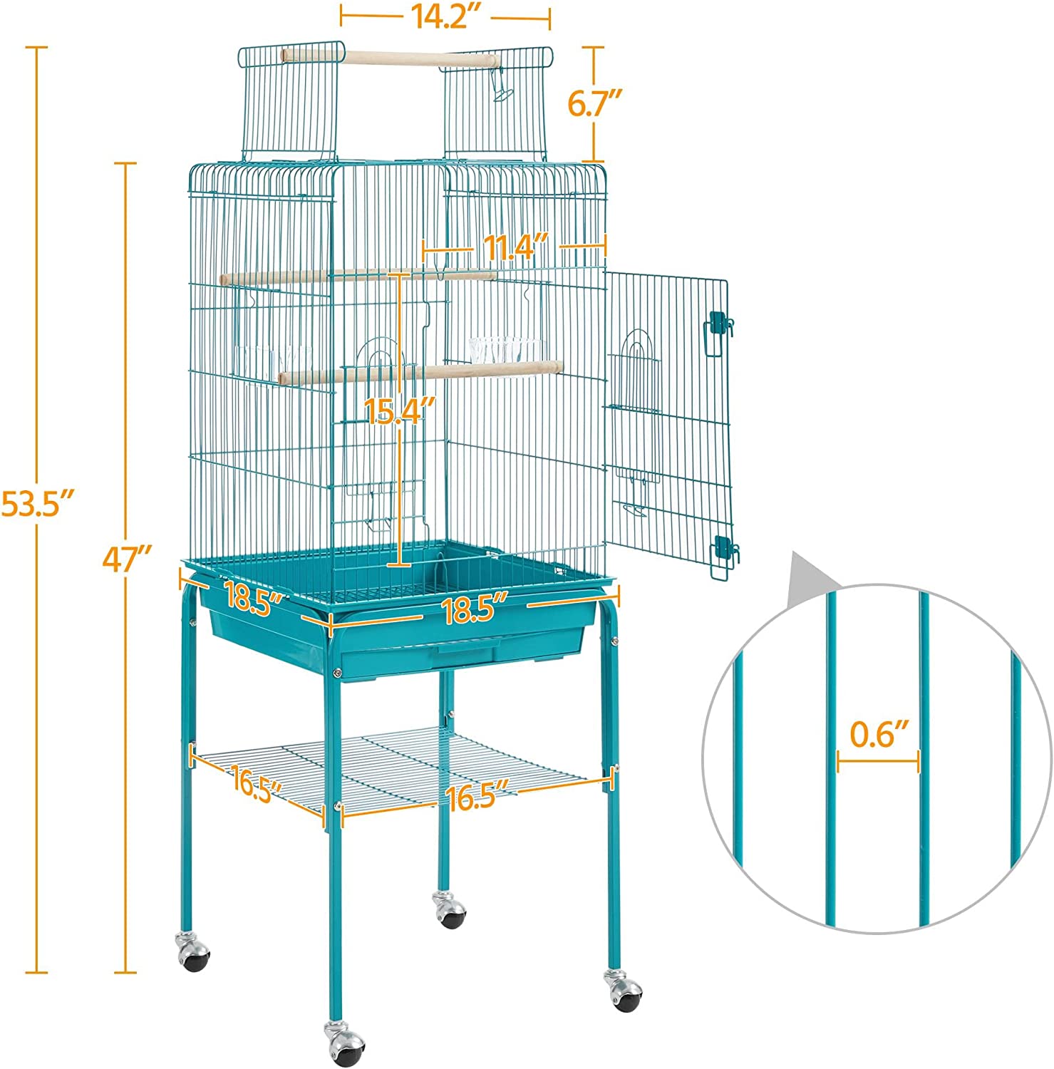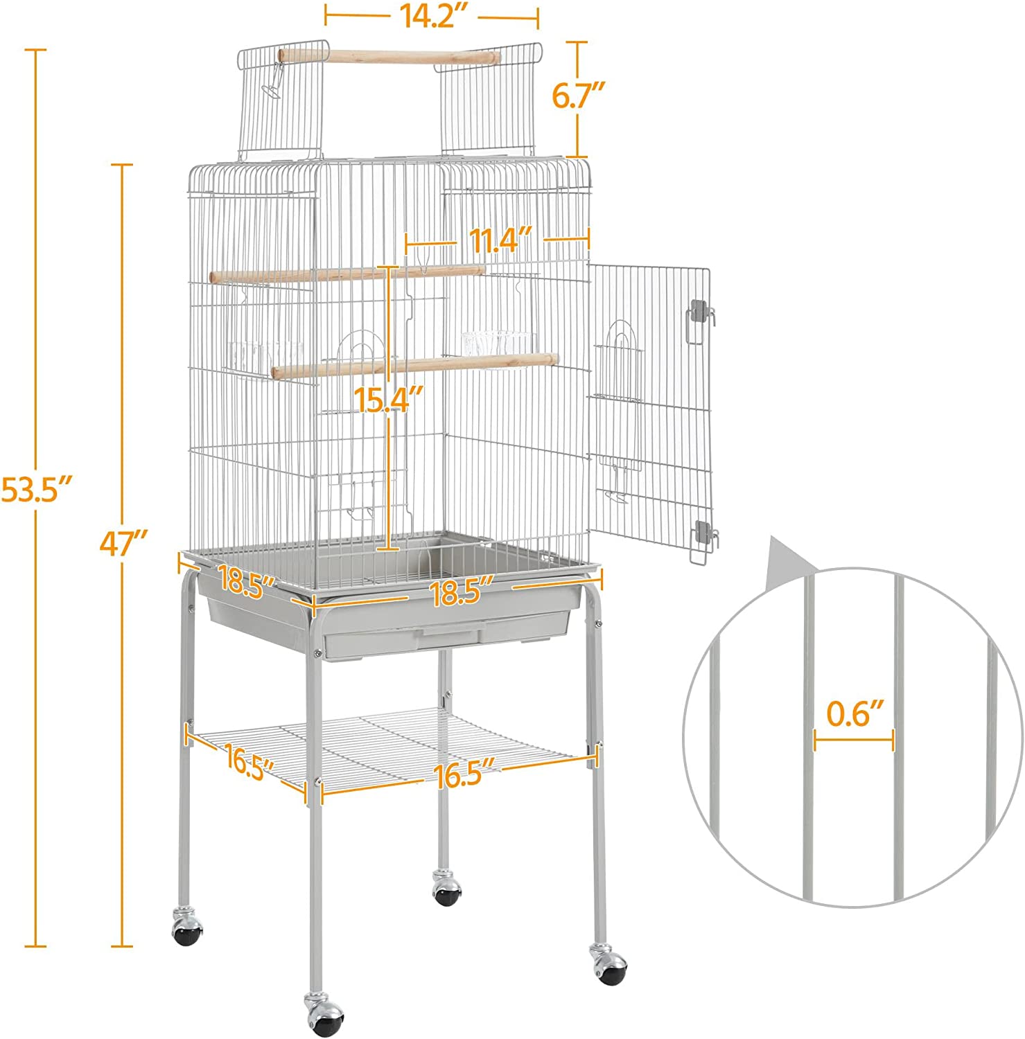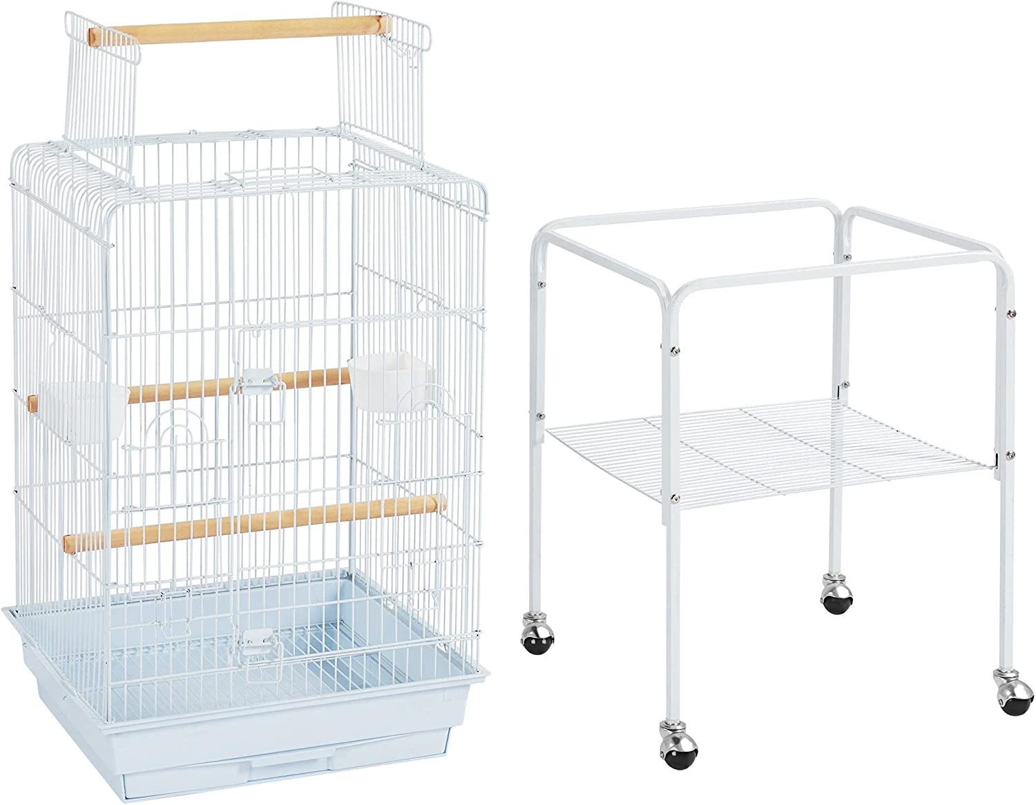 • 【EXTRA ACCESSORY STORAGE】: Another thoughtful design for pet parents is the extra storage shelf on the stand. It can keep bird cage cleaning tools, bird seeds and toys handy and neat.