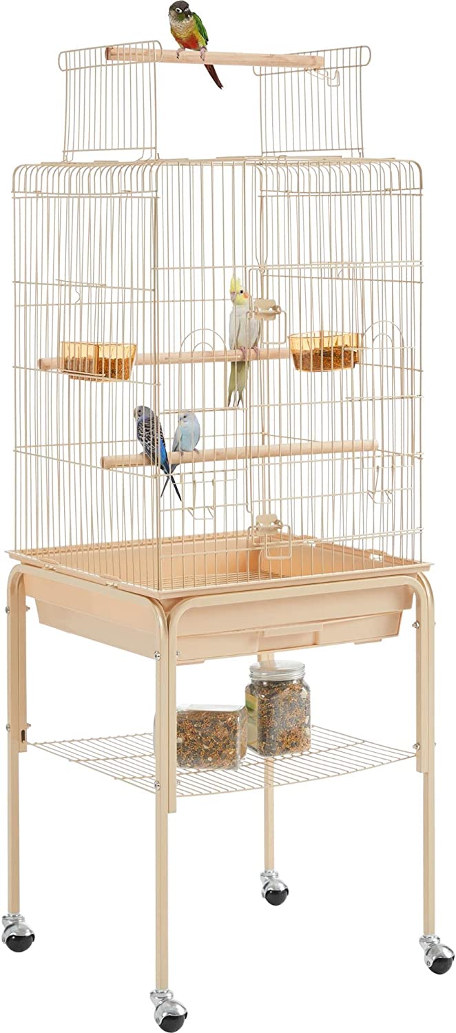 Yaheetech 53.5inch Height Play Top Bird Cage Iron Parrot Parakeet Cage for Small Birds Lovebirds Cockatiel Canary Quaker with Rolling Stand