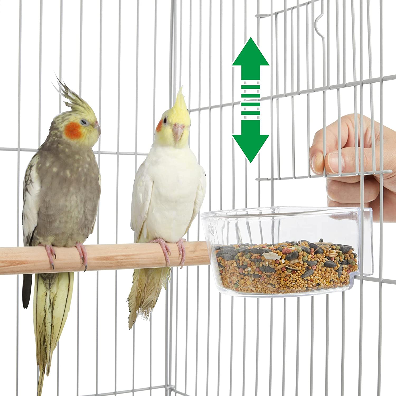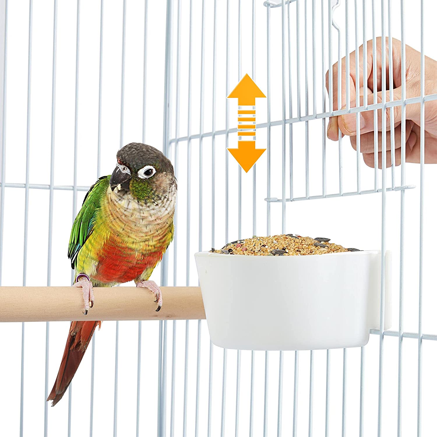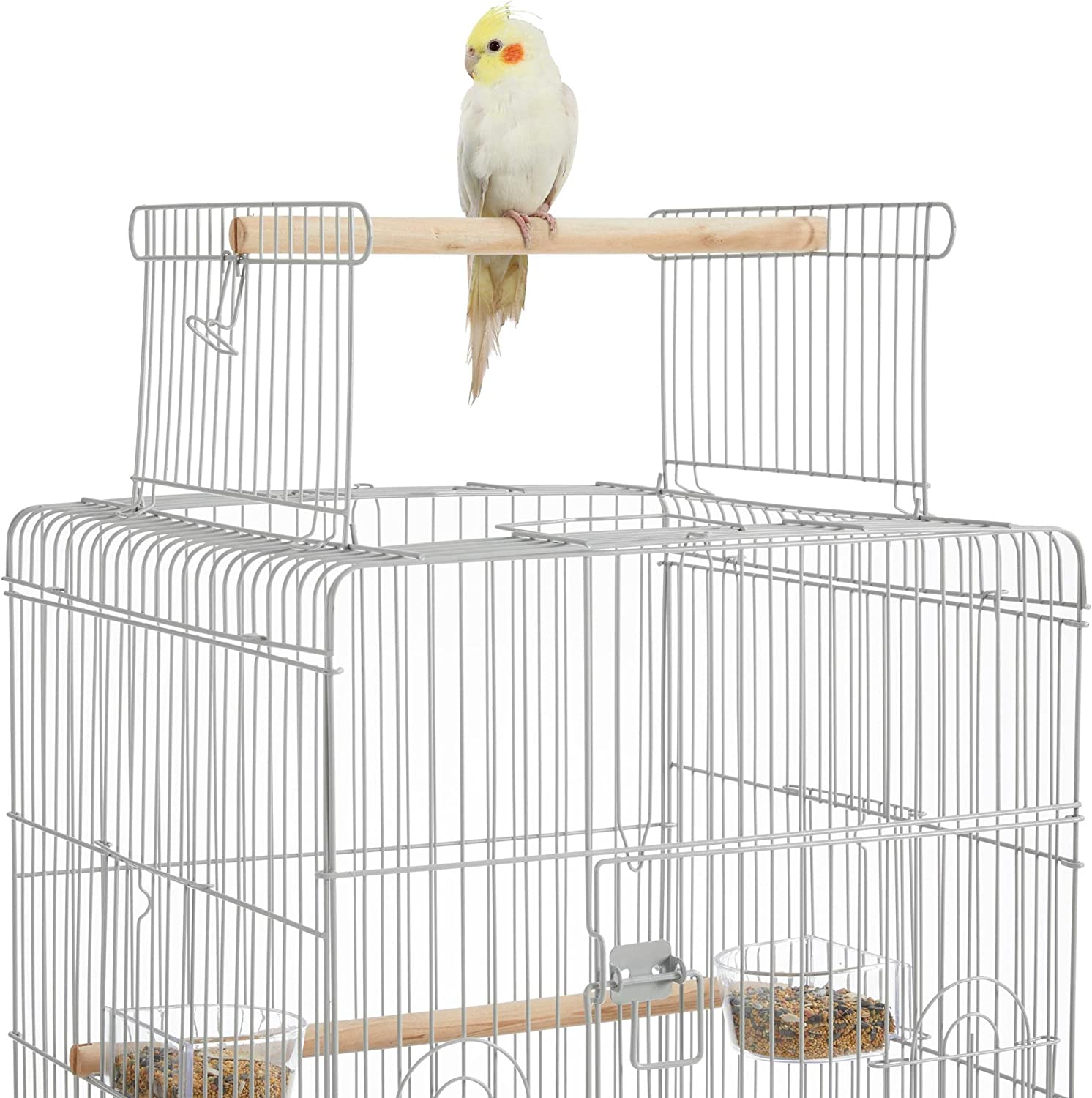 • 【CONVENIENT FEEDING SYSTEM】: On the facade of this rolling bird cage are two feeding cups that can be accessed outside the cage through the small feeding doors. This convenient design helps easy bird seed refilling without disturbing your easily-scared friends.