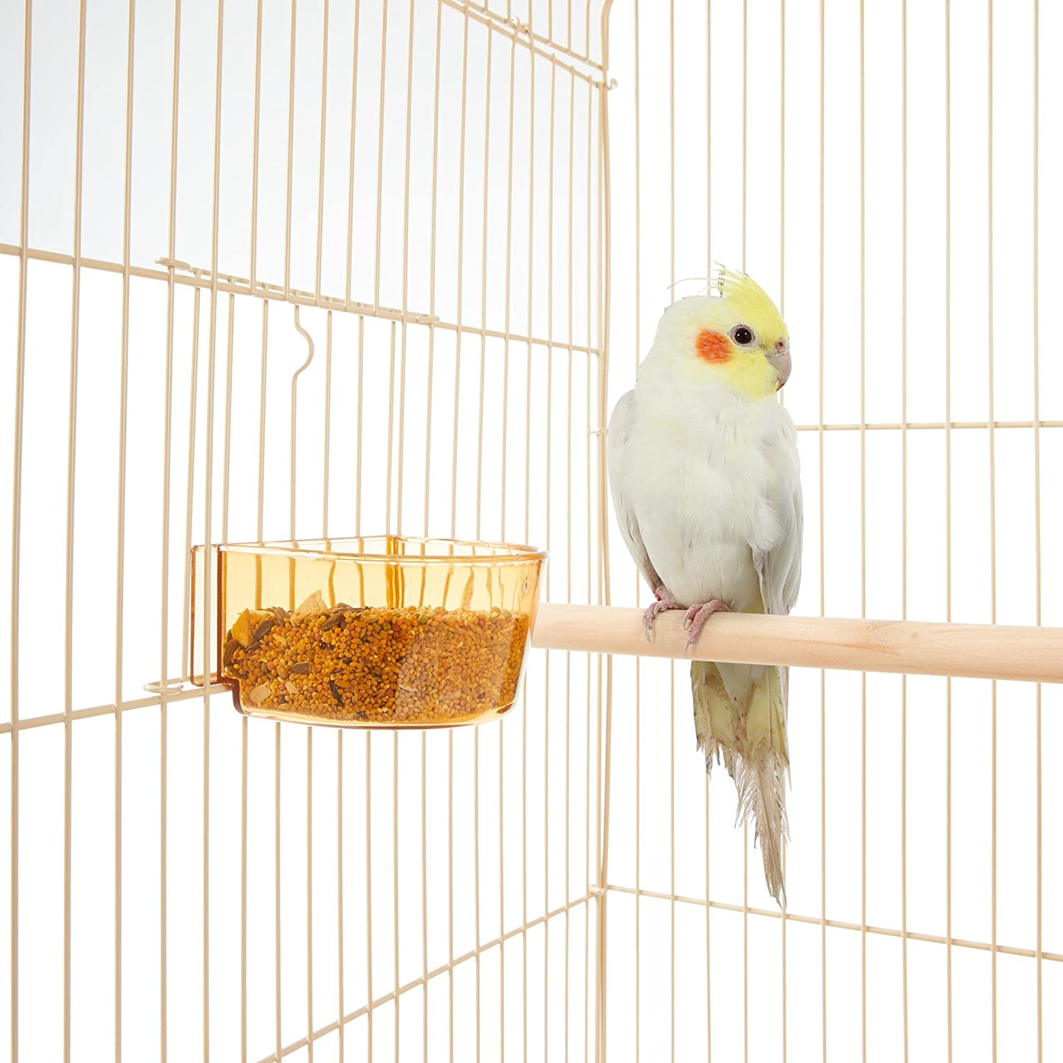 • 【SOLID CONSTRUCTION】: Crafted from quality metal wires covered with harmless rust-resistant paint, our bird cage is a strong metal structure with an easy-to-clean plastic base, and two sanded wooden perches for the birds to play.