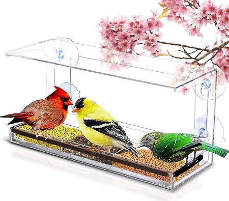 Clear Window Bird Feeder - Sturdy & Easy to Install with Strong Suction Cups-Detachable Design for Effortless Cleaning-Perfect Bird Watching by Cats, Kids & Elderly-Window Bird Feeders for Outside