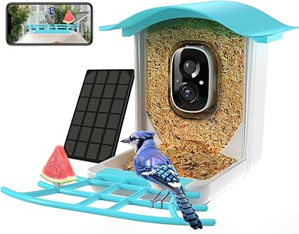 Outdoor Smart Bird Feeder Camera with AI Identify Bird Species, Wild Bird Watching Camera, Live View, Instant Notifications, with Solar Panel, Gift for Bird Lover and Parents