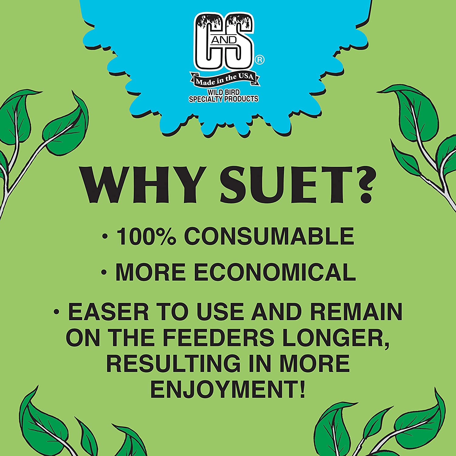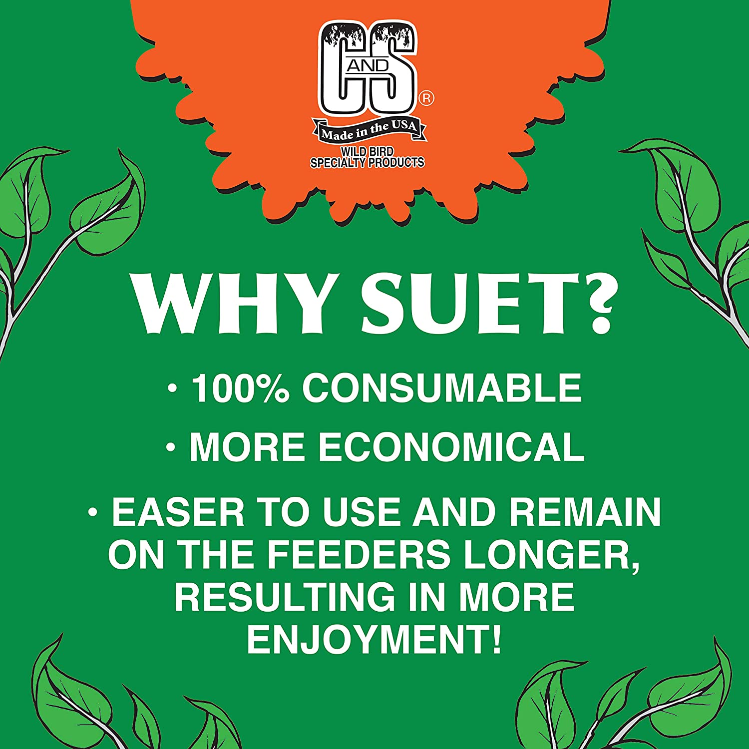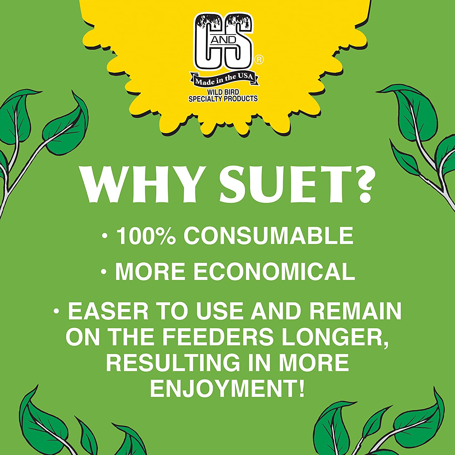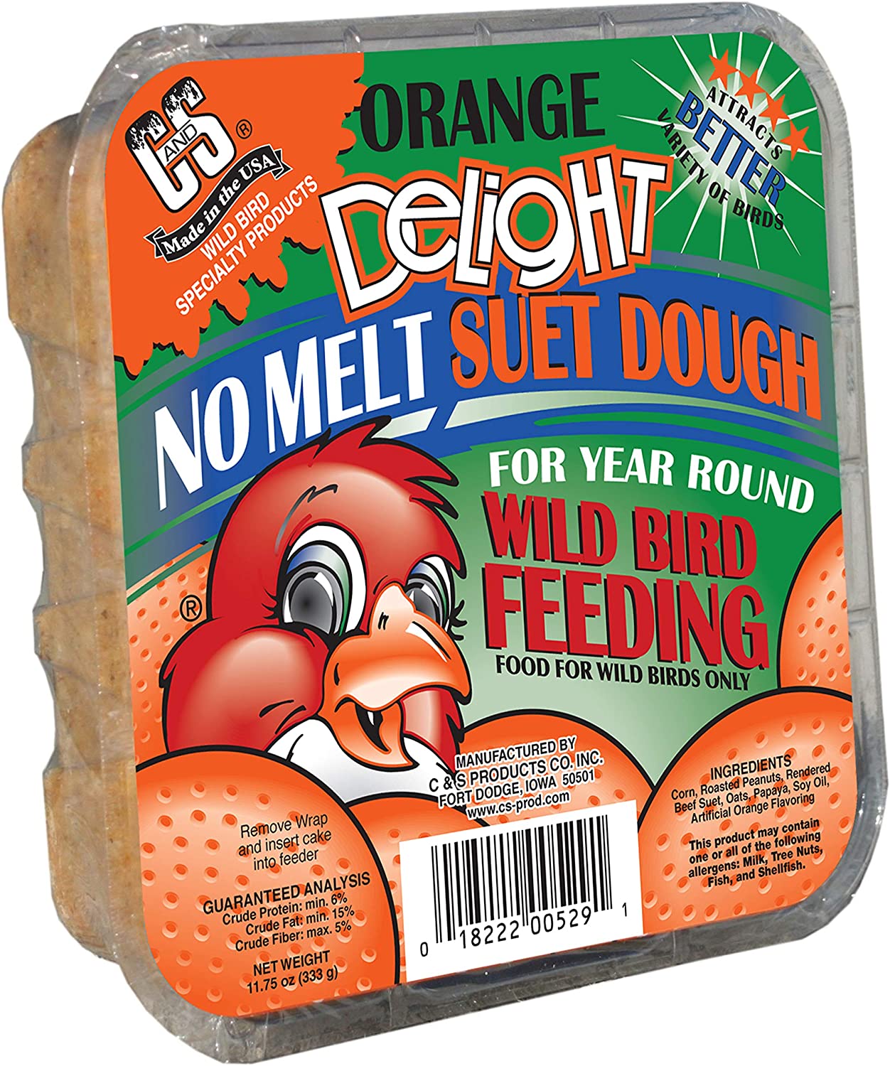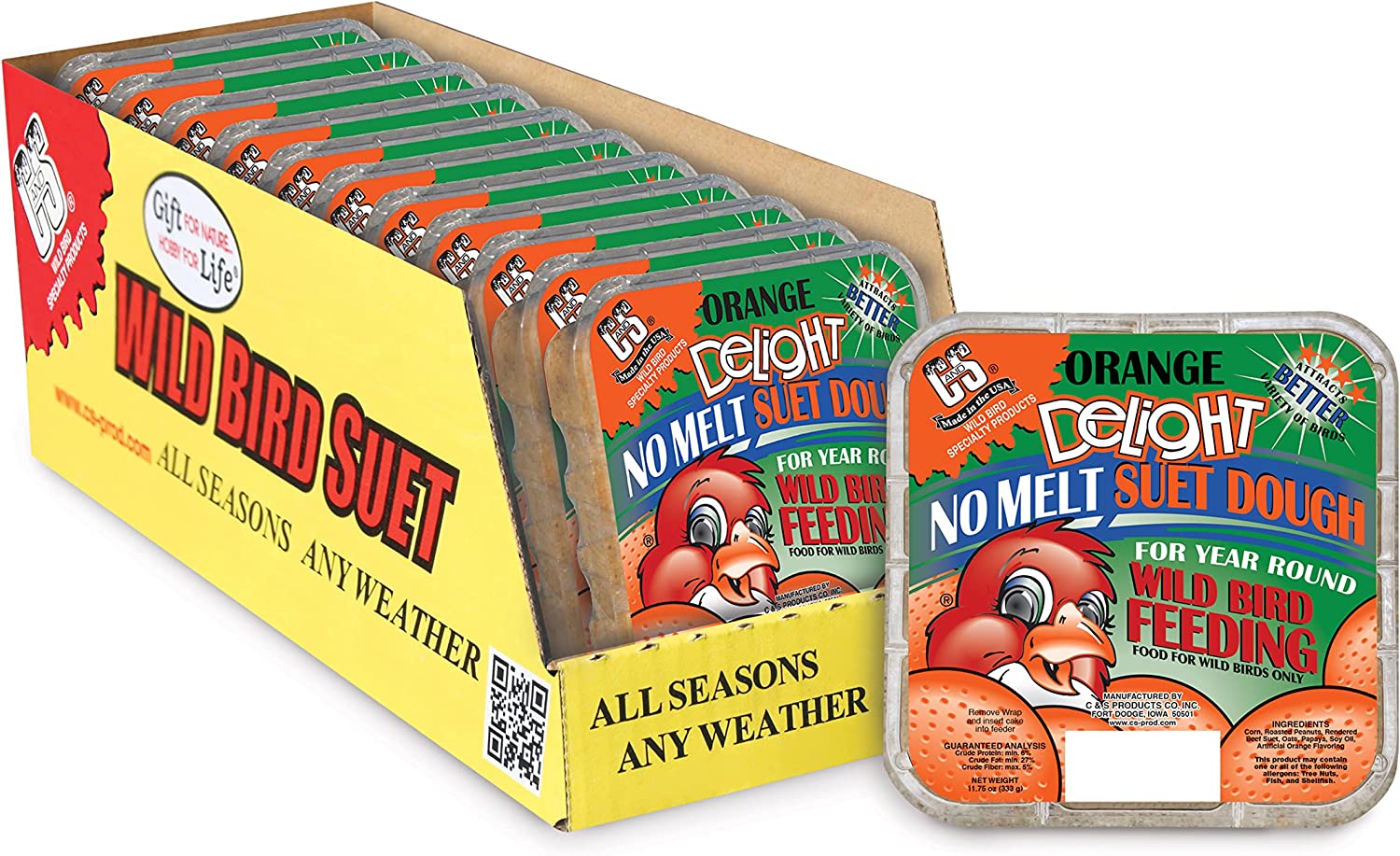 Hot Pepper Delight is blending the same high quality beef fat with a base of corn meal and roasted peanuts. Other ingredients are added and mixed into a soft dough texture and then pressed into a cake form. C&S's process, unlike others who pour their dough products into a tray, creates the only true no melt suet product line in the world. This produces products unmatched in the industry for year round feeding in all types of weather. Attracts the best variety of birds.C&S Products Company is the leader in the Wild Bird Suet Market. Since our founding in 1986, C&S Wild Bird Feeding products and accessories have achieved unprecedented levels of customer satisfaction and loyalty. We take pride in our reputation of creating the highest quality products! We have a great team of employees that take pride in what they do every single day. We promise to continue to offer our customers products that give the best value and bird loving results!