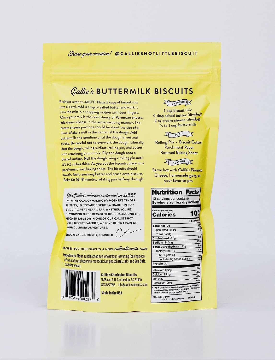 • HONORING THE TRADITION - We are a handmade biscuit company with a small family of bakers, keeping the tradition of southern biscuit making alive, baking hot little biscuits for your table as well as our own. At Callie's we are honoring the tradition of one of the south's oldest art forms and forging new traditions for those we serve.