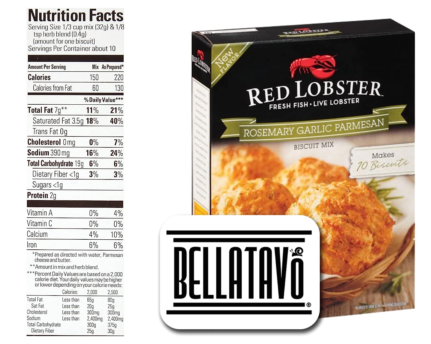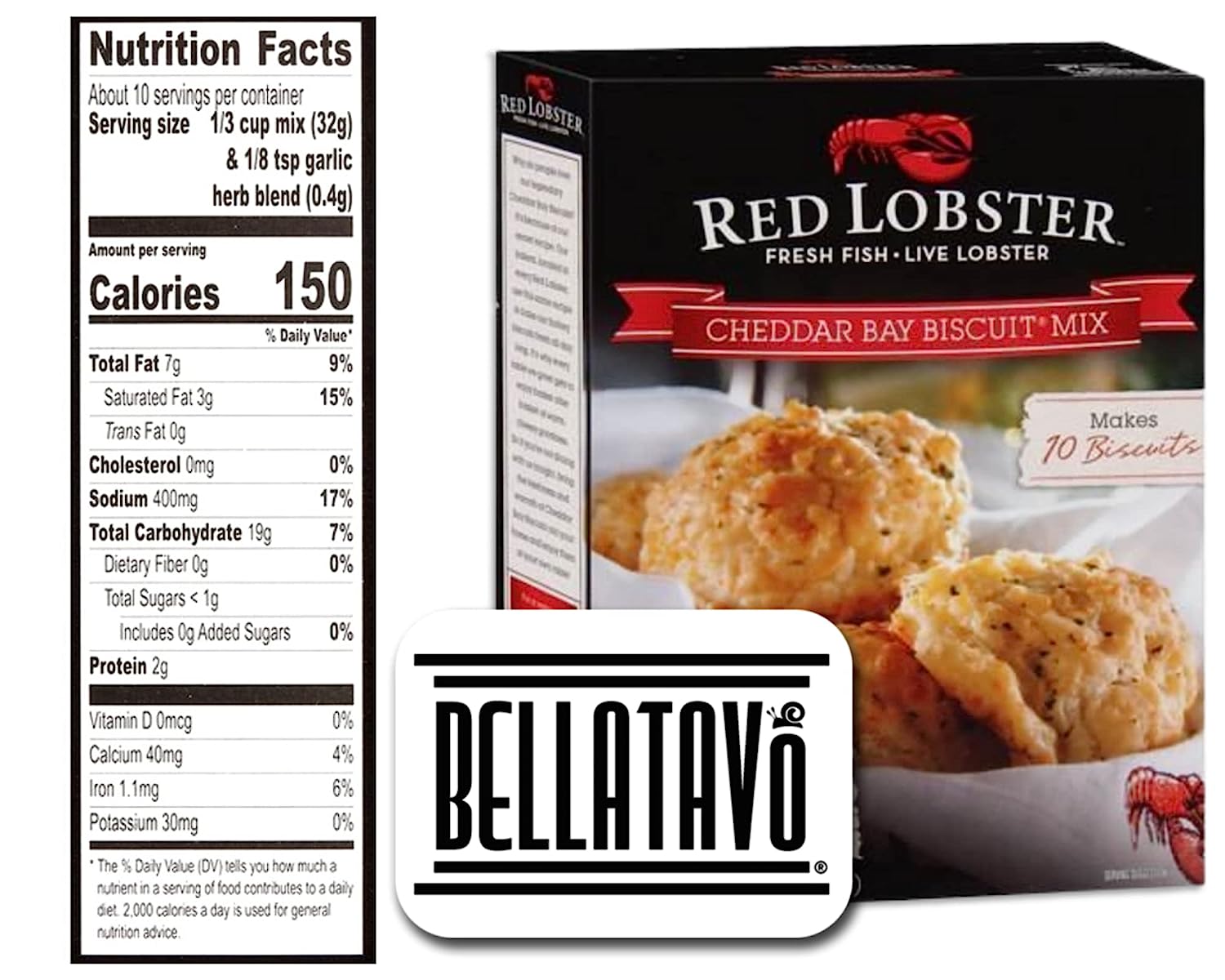Cheddar Bay Biscuit Mix Bundle. Includes 2-11.36 Oz Boxes of Red Lobster Cheddar Bay Biscuit Mix! Each Box of Red Lobster Cheddar Biscuit Mix Yields 10 Biscuits. Comes With a BELLATAVO Fridge Magnet!