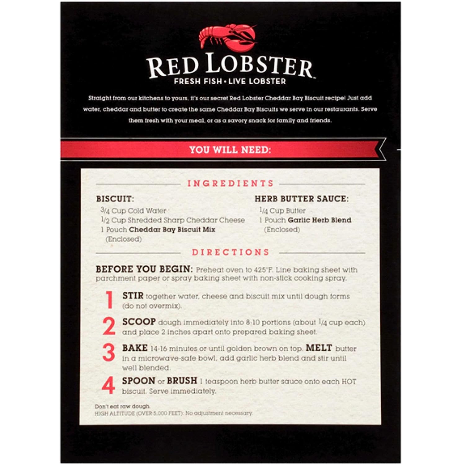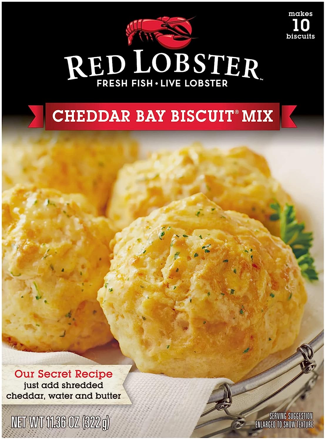 Red Lobster Cheddar Bay Biscuit Mix is a savory, family favorite that comes straight from our kitchen to yours. They’re not only delicious, they’re incredibly easy to make. Simply add shredded cheddar and water to the mix and bake. Before serving, mix the contents of the garlic enclosed herb pouch with melted butter and brush or spoon it on your freshly baked biscuits. Then sit back...and enjoy!