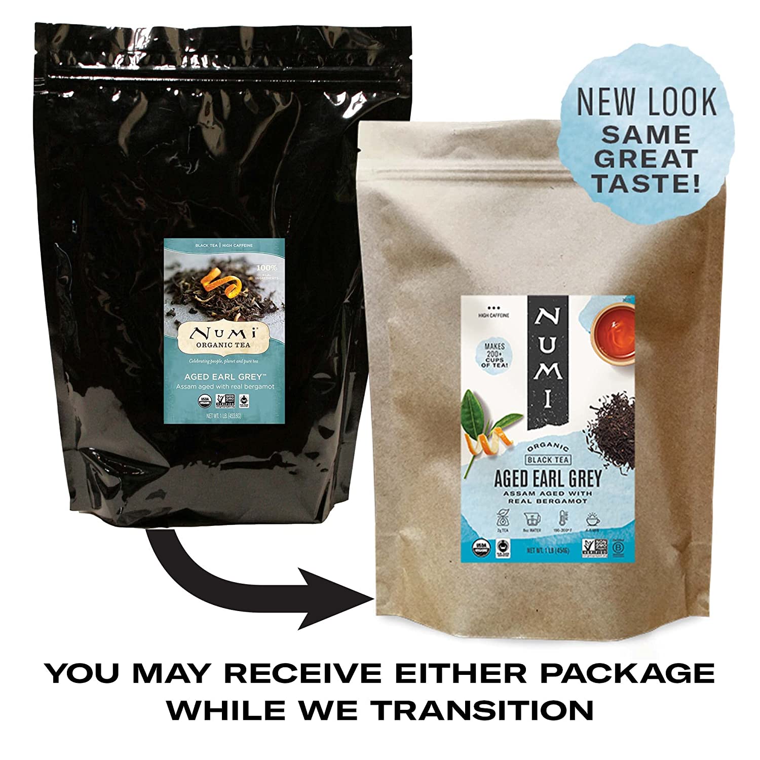Numi Organic Tea Aged Earl Grey, 16 Ounce Pouch, Loose Leaf Black Tea, 200+ Cups, Packaging May Vary