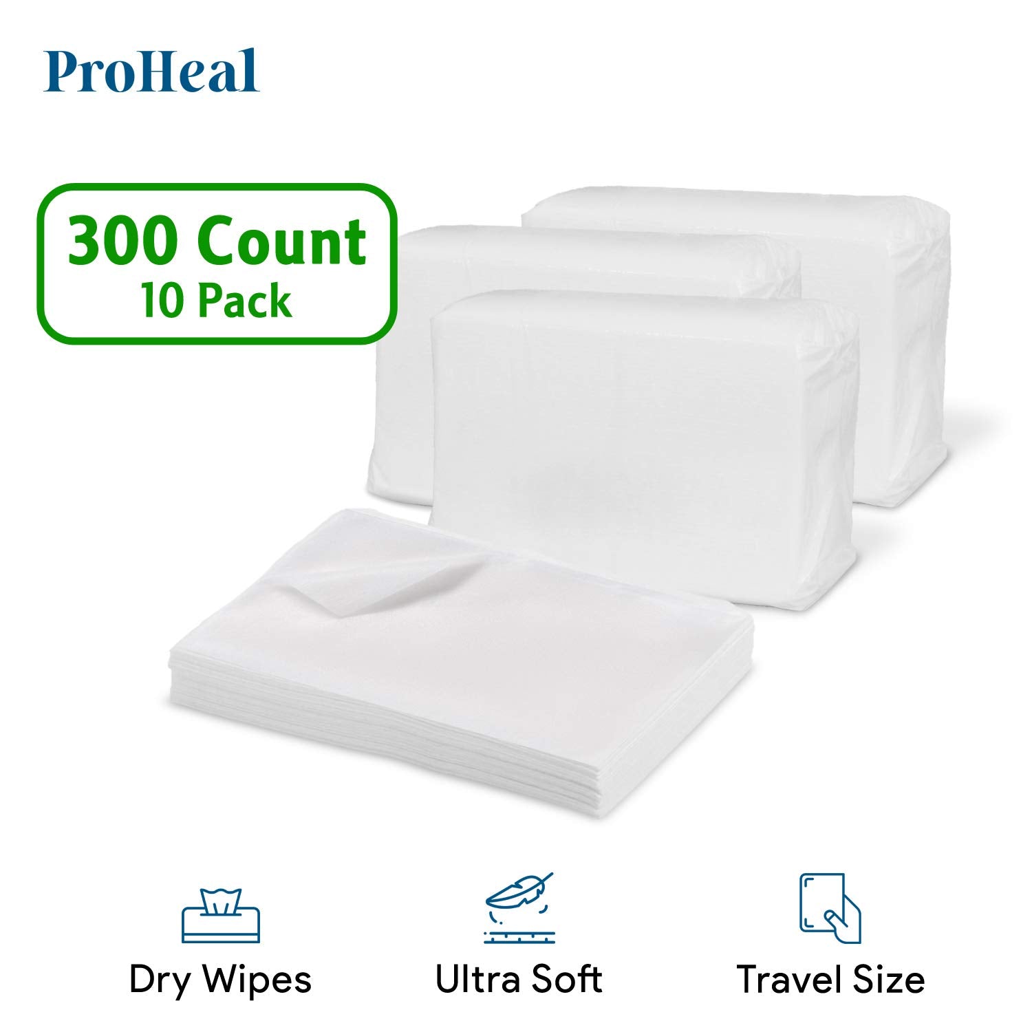 Disposable Dry Wipes for Baby and Adults, 60 Count (2 Pack) - Ultra Soft Cotton Tissue Washcloths - 7" x 13" Travel Size - Non-Moistened Cleansing Cloths for Incontinence, Body and Face - ProHeal