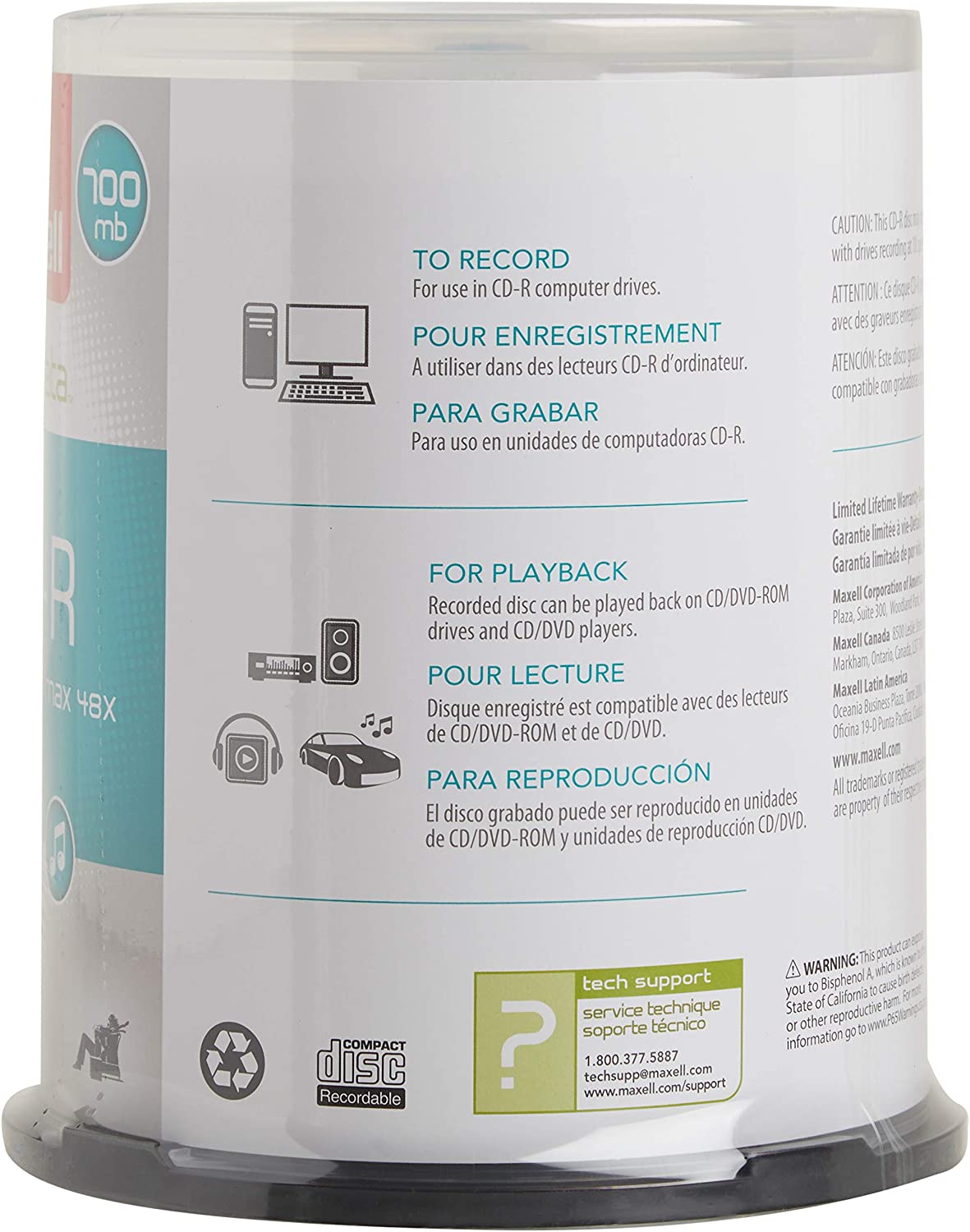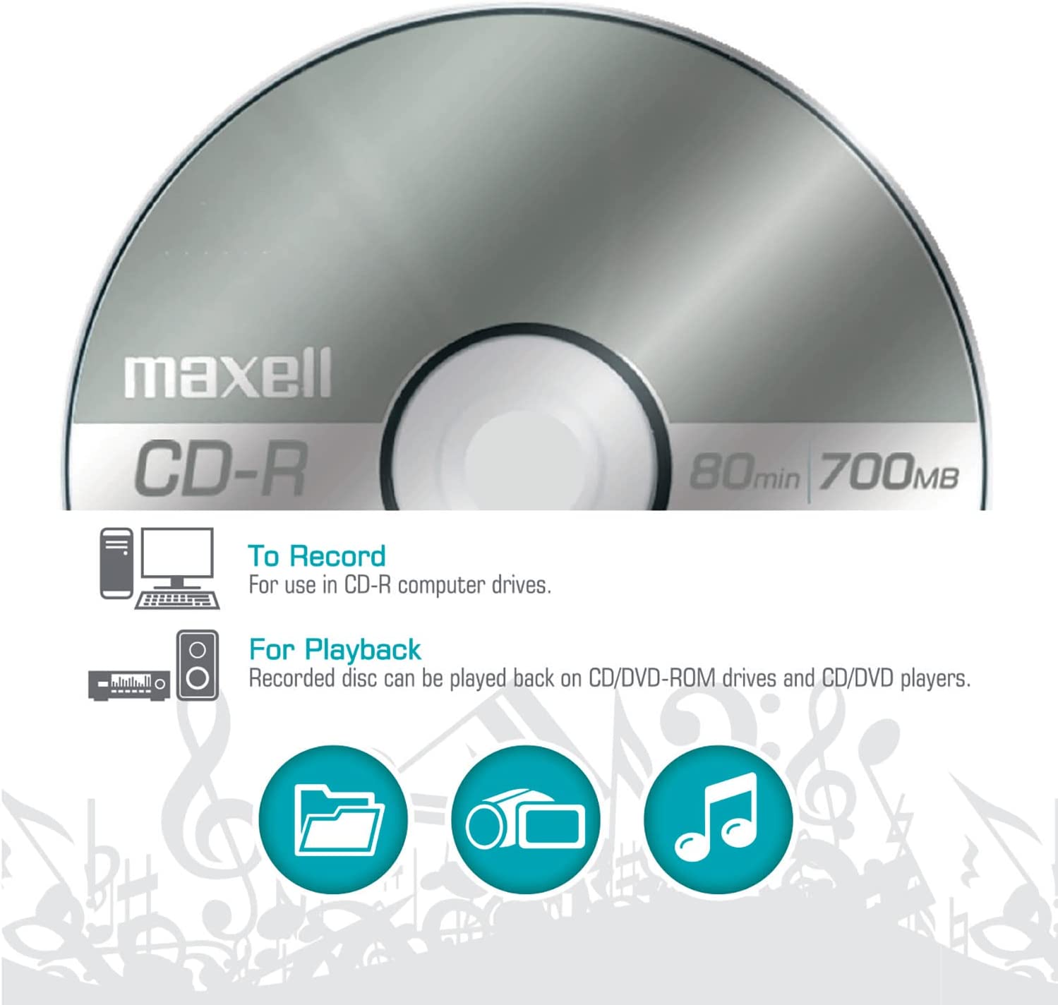 CD-R records permanently onto its branded surface. Offers a 700MB/80 minute capacity. Supports write speeds up to 48X. Ideal for music recording, storing digital photos and data archiving. Play back in virtually any CD recorder, burner/player, DVD player, computer drive or game console.