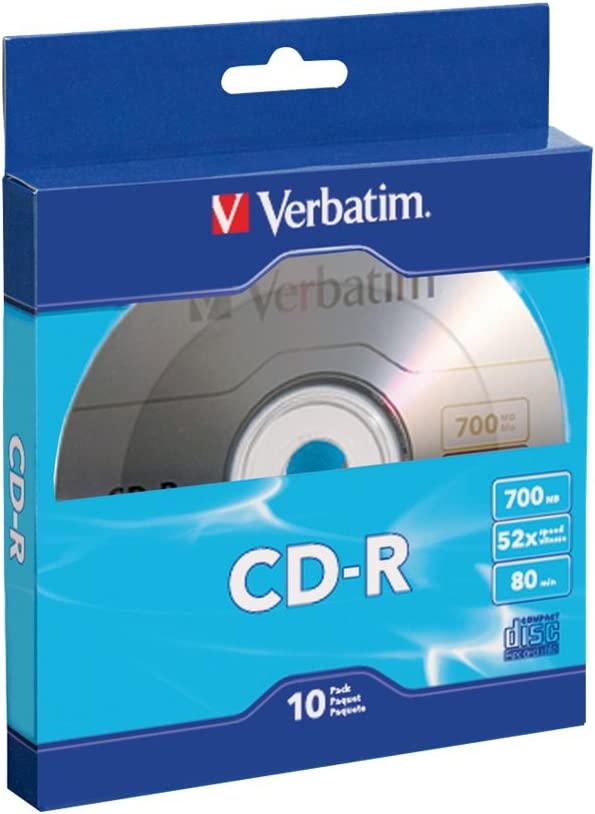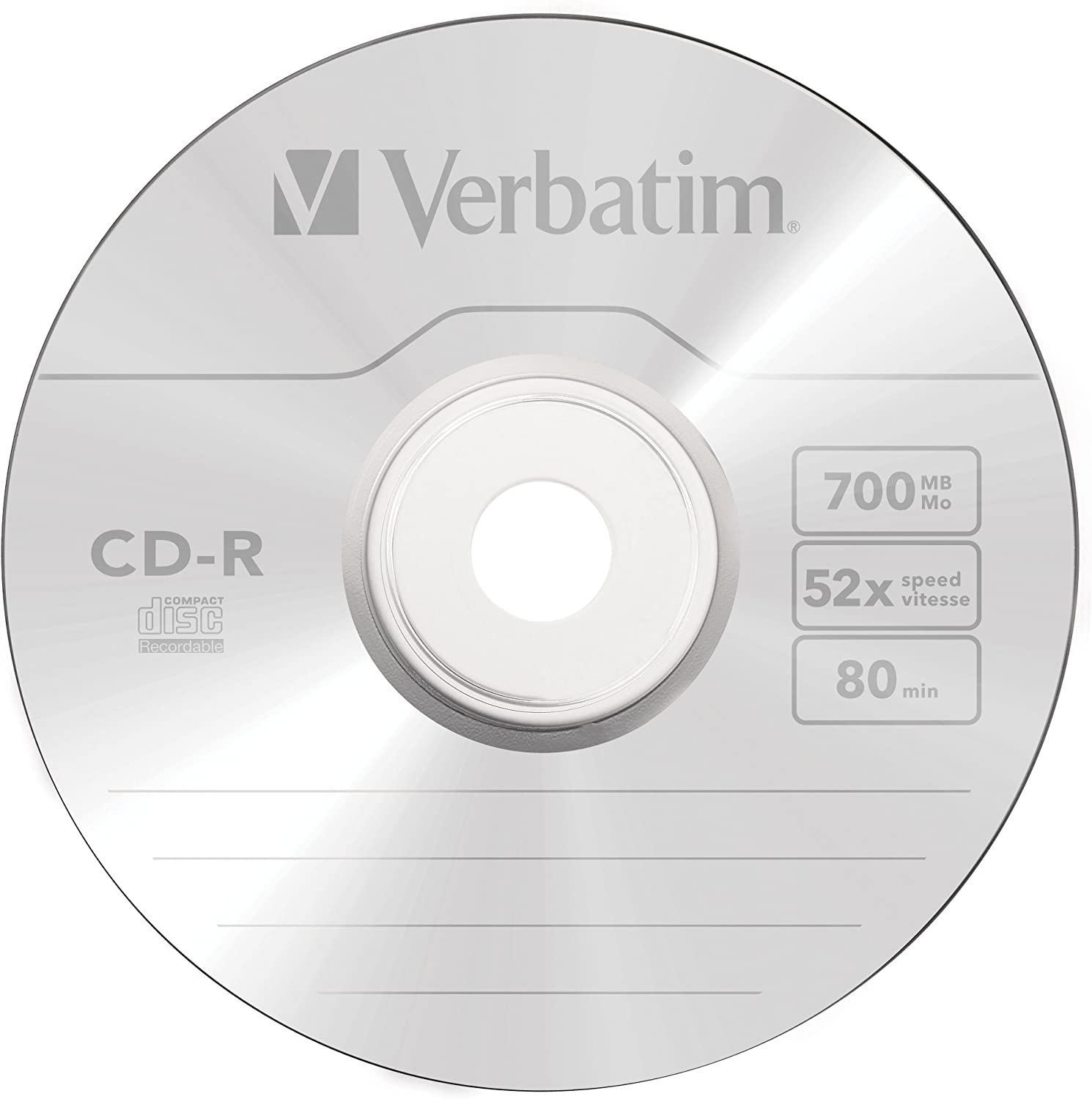 Store up to 700MB of data or 80 minutes of CD-quality audio performance recording dyes for burning at high speeds, up to 52XThese CD-recordable discs store up to 700MB of data or 80 minutes of CD-quality audio on a single disc. Verbatim CD-R media utilizes performance recording dyes for burning at high speeds, up to 52X, allowing you to record a CD in less than 2 minutes. These are one-time record discs, ensuring that your music, images or data will not be erased.