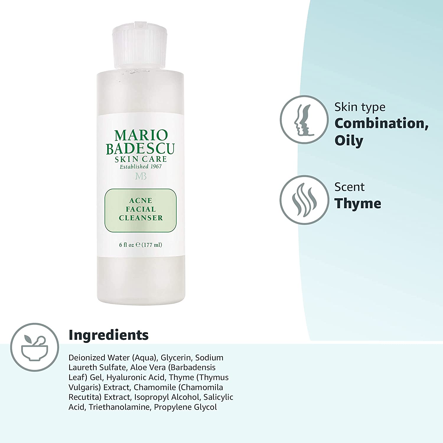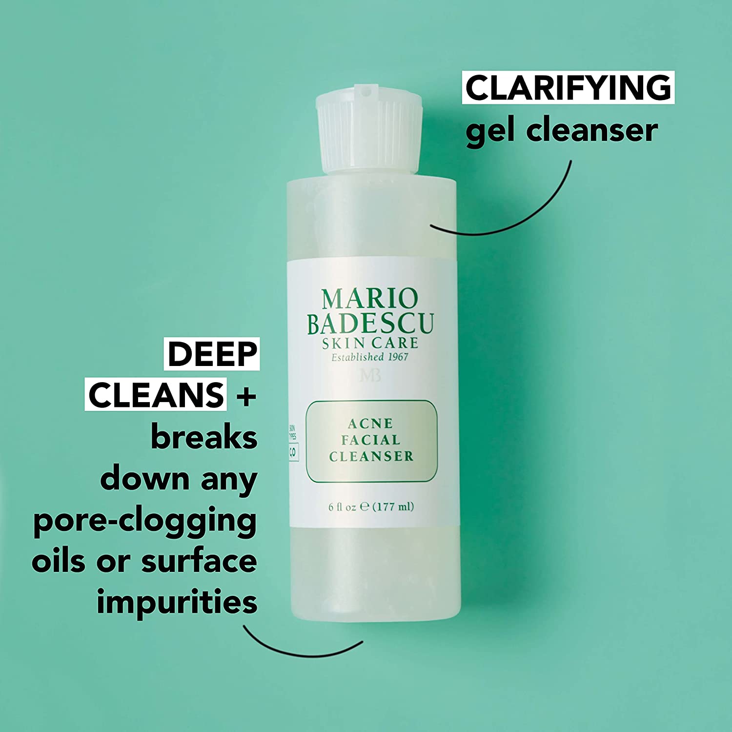 Mario Badescu Acne Facial Cleanser for Combination & Oily Skin, Oil-Free Face Wash with Salicylic Acid & Aloe Vera, Deep Pore Clean, 6 Fl Oz (Pack of 1)