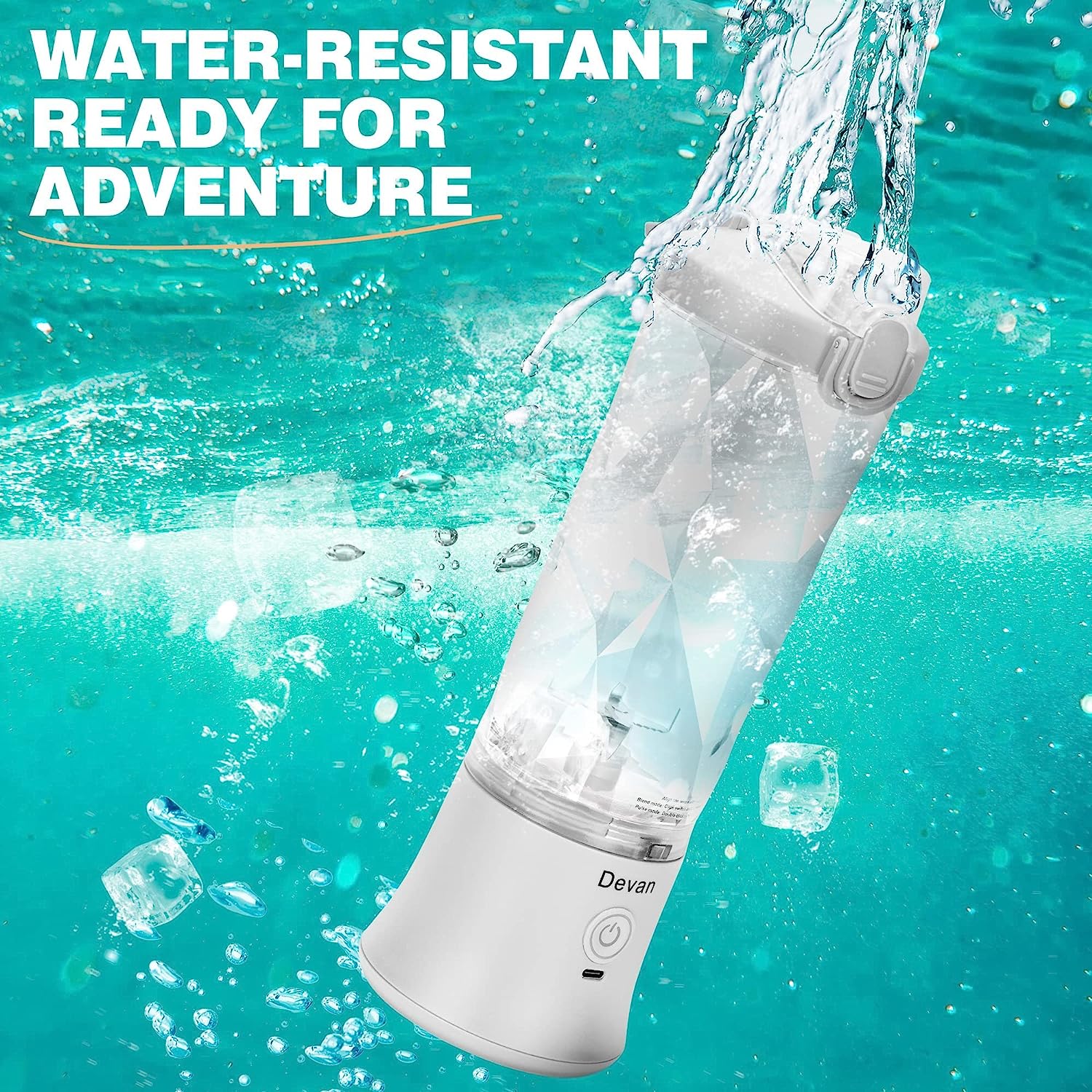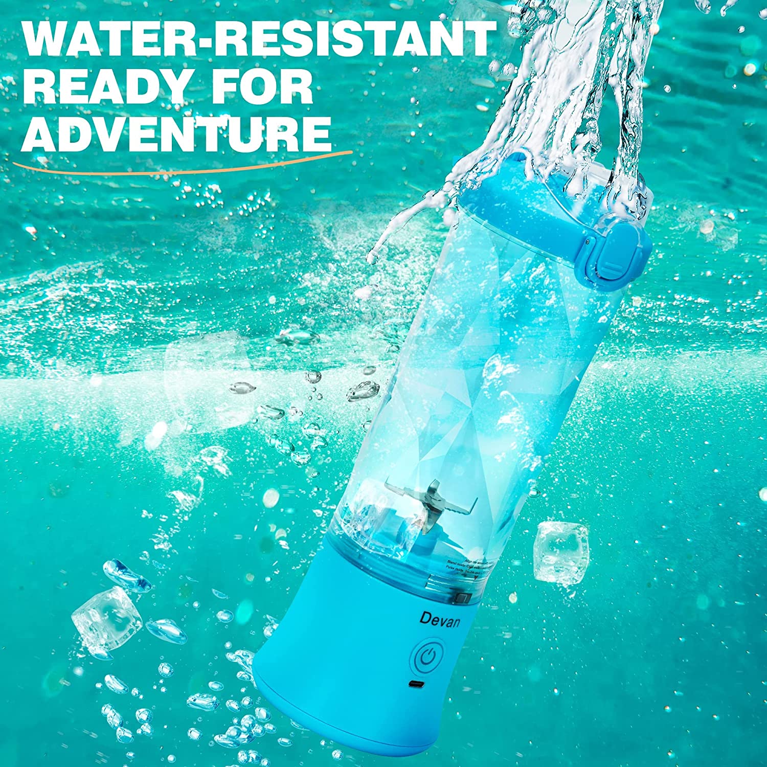 • IPx67 Water-Resistant &Easy Cleanup: To the beach, to the pool. Devan portable blender is IPx67 waterproof, so you can bring your blender anywhere. Take your blender to the sink or the pool without worrying about spills or even submersion in water. It can be immersed in water up to 10 minutes.