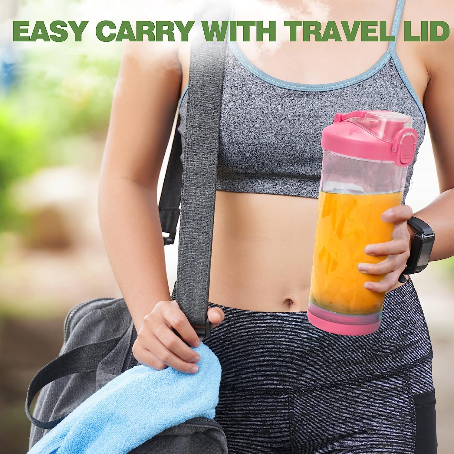 • Larger Capacity, Perfect Gift: 20 oz smoothie cup with travel lids and a flip-top lid cup turn your healthy drink into the to-go mixed beverage. A great gift to take to the gym, while camping, to work, or just relaxing at home. Put clear water into blender, turn on the blender to clean.