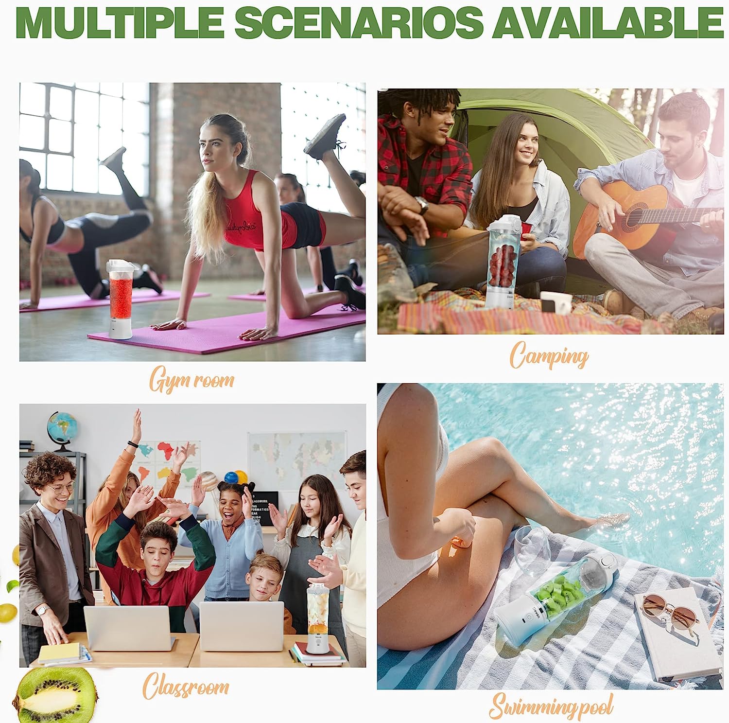 • Diamond Jar Design & Safety Protection: Built-in 12 smart LED indicators display remaining power. Portable diamond pattern design is made from eco-friendly, food-grade non-toxic PCTG material, BPA free. This portable blender is built in safety magnetic sensing switch prevent blender from overheating.