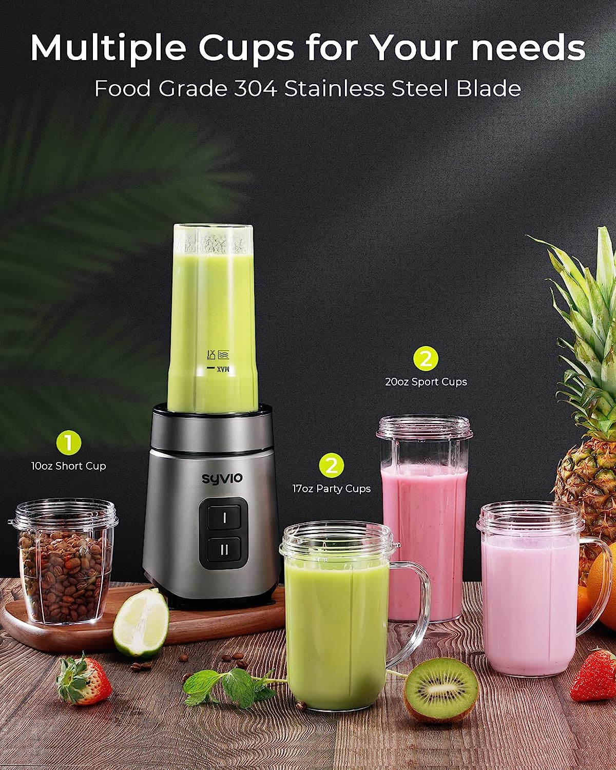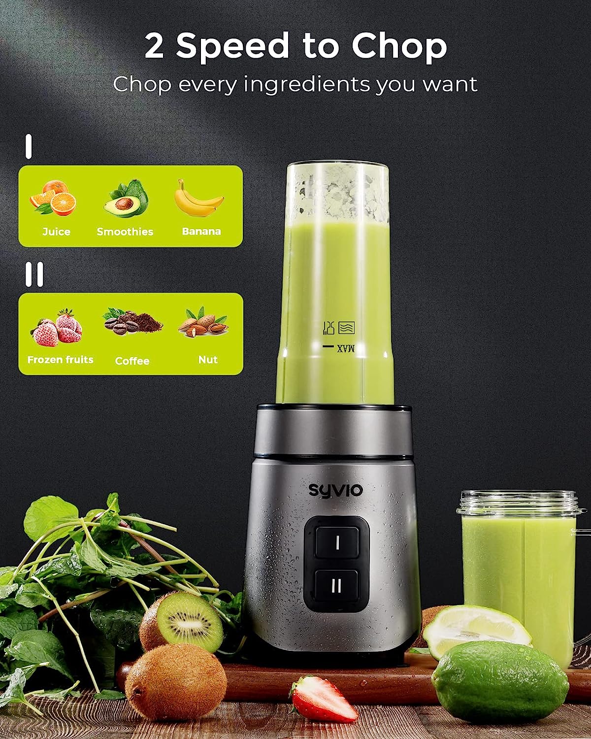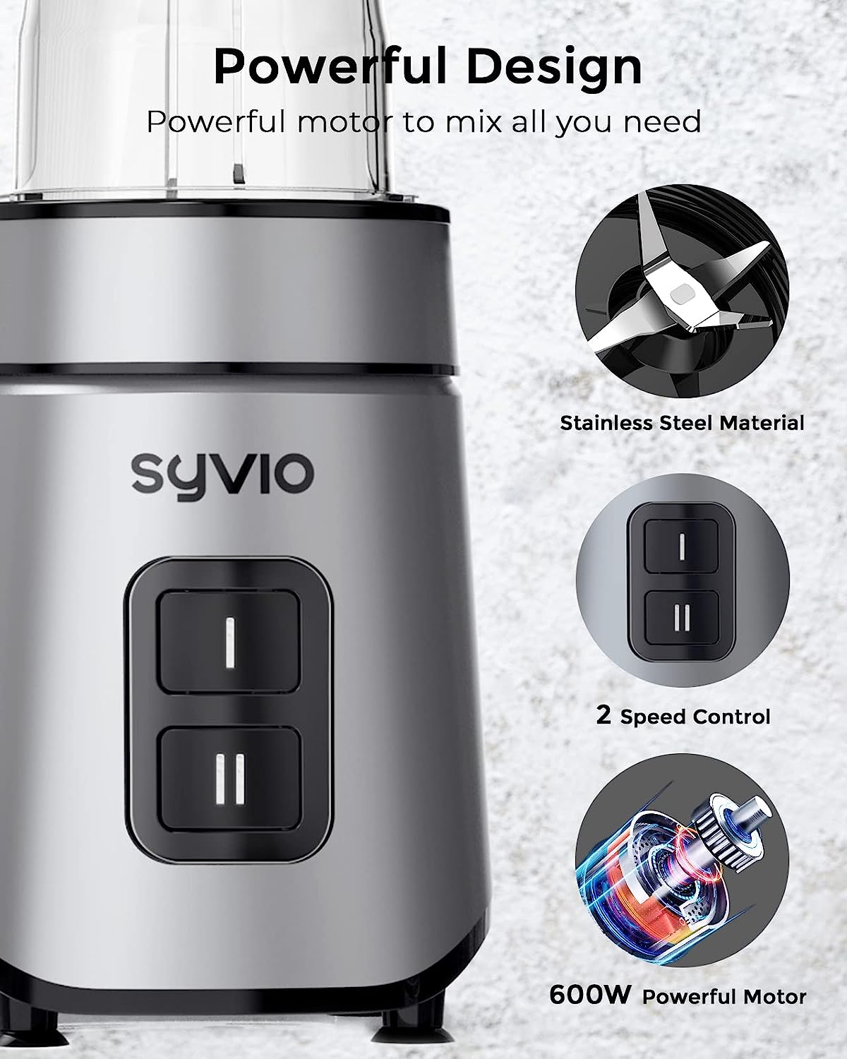 Syvio Blender for Shakes and Smoothies, 600W Personal Blender with 2 Speed Control, Bullet Blender with 2 BPA-Free 20Oz Sport Cup