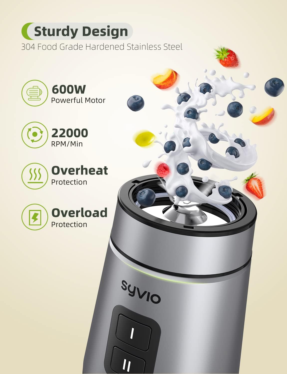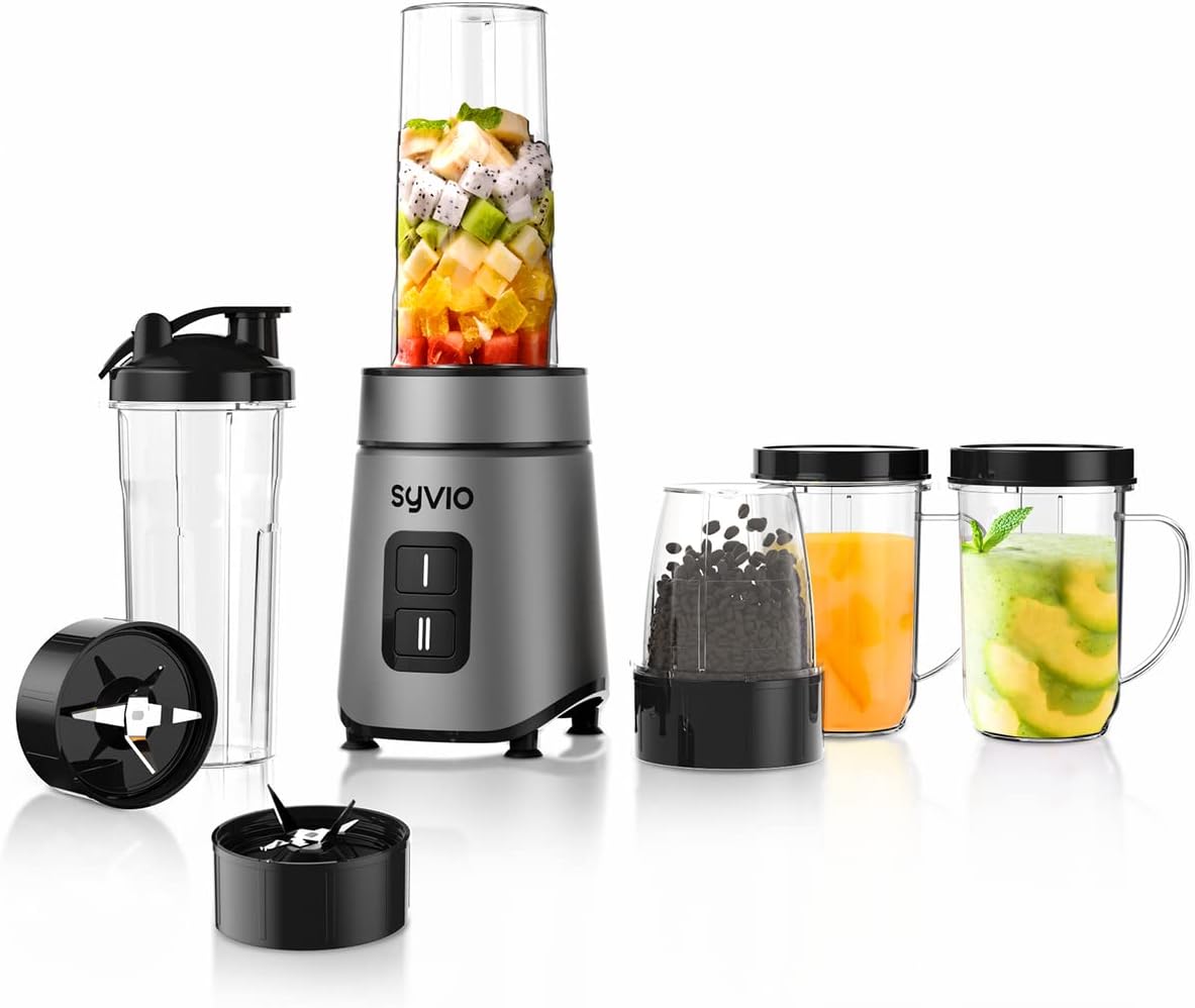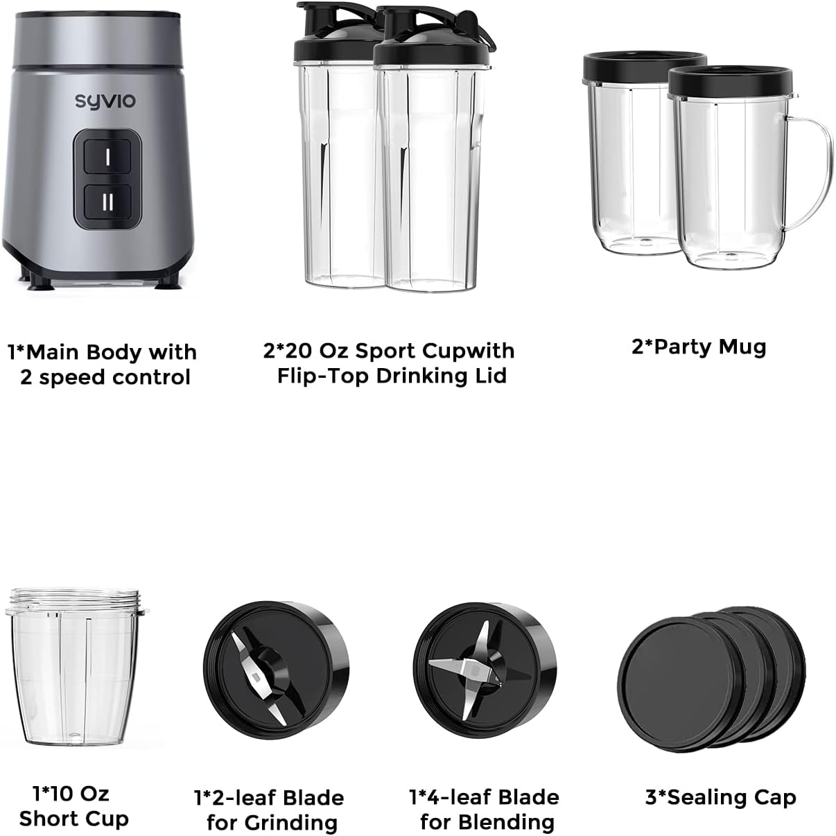 Syvio Blender for Shakes and Smoothies, 600W Personal Blender with 2 Speed Control, Bullet Blender with 2 BPA-Free 20Oz Sport Cup
