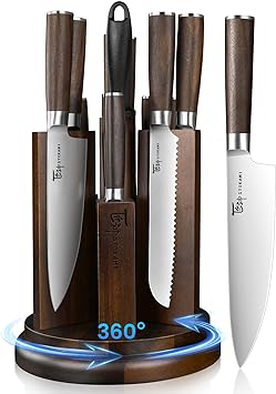 Kitchen Knife Set with Magnetic Block and Sharpener 14 Piece Knife Set 360¥� Rotatable Holder Ultra Sharp High Carbon Stainless Steel Knives Sets with Steak Knives, Anti-slip Ergonomical Handle
