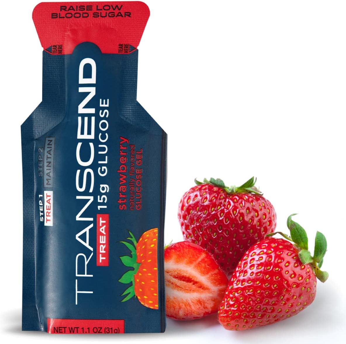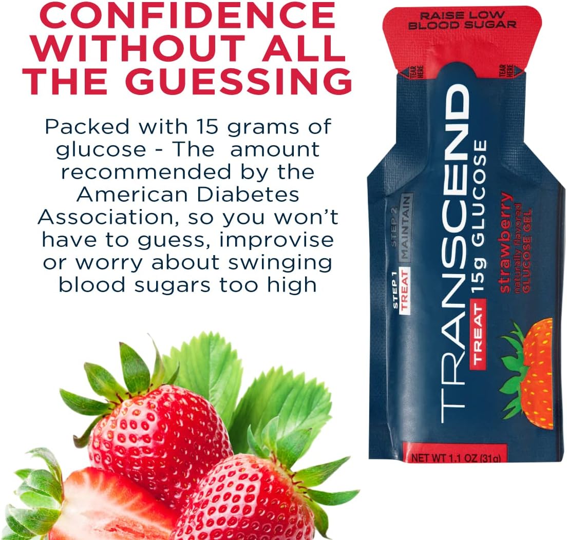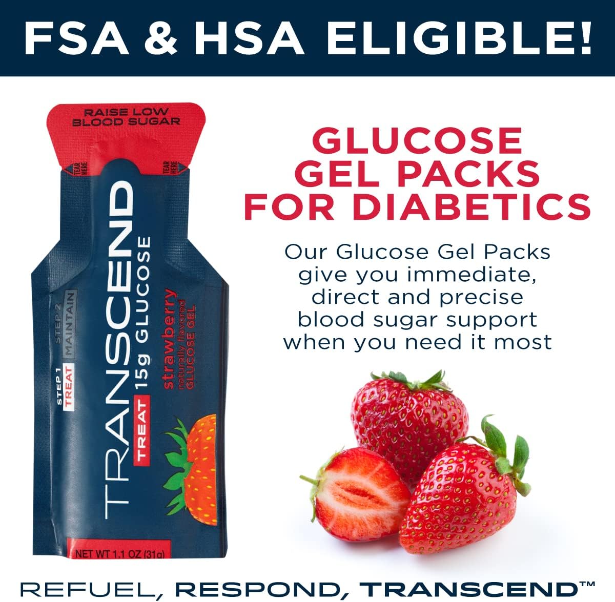 Transcend Glucose Gel Packs - Strawberry, 15 Pack (1.1oz Each) - FSA/HSA Eligible - Glucose Gel Packs for Diabetics, Blood Sugar Support Alternative to Glucose Tablets - Precise 15g Dose, Made in USA