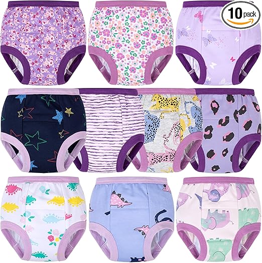 BIG ELEPHANT 10 Packs Baby Girls' and Boys' Potty Training Pants, 100% Cotton Absorbent Training Underwear for Toddler, 5-6Y