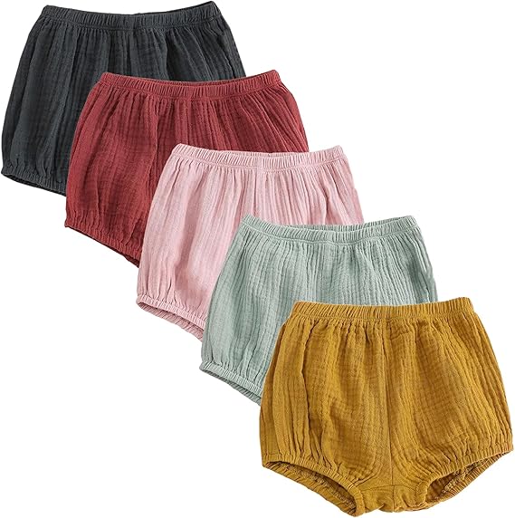 EISHOW 5 Pack Newborn Baby Soft Casual Bloomer Shorts Summer Diaper Cover Infant Girls Boys Cotton Linen Underwear Panty