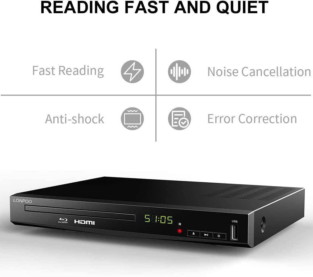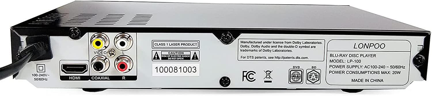 • Multi-functional Home Theater Player : Support blu ray discs in region A/1 only. Non-Blu Ray Discs region free. This Blu-Ray Disc Player works as DVD player, CD player, U disk files player. The LP-100 allow you to play distinctive file formats including BD, BD-R, BD-RE, DVD-R, DVD-RW, DVD+R, DVD+RW, DVD-Video, VCD, CD, CD-R, CD-RW (★:Only HDMI input support blu ray videos, AV input didn't support blu ray discs!)