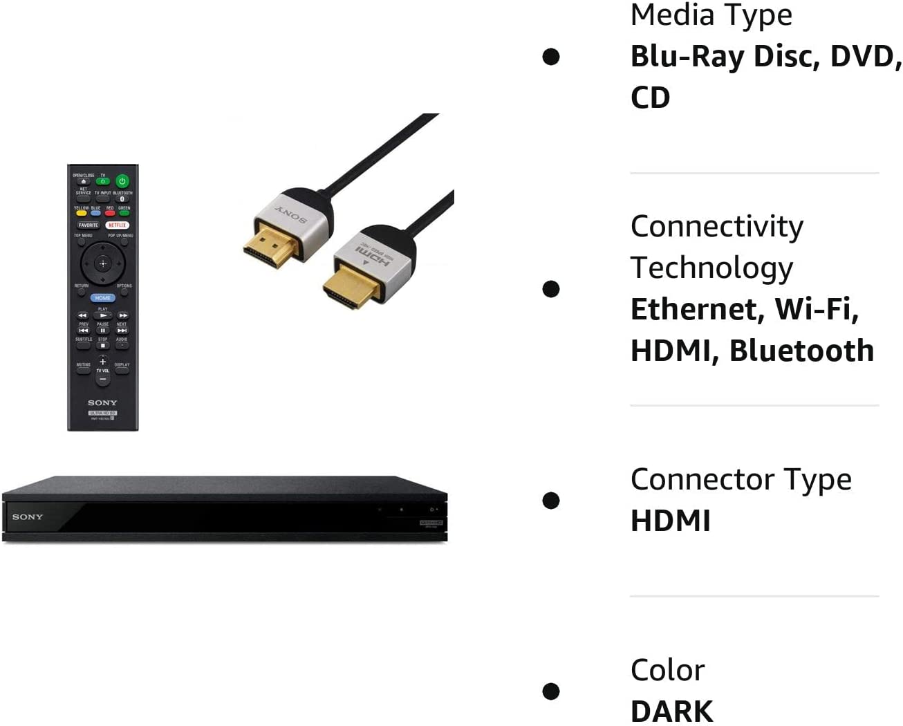 Sony UBP-X800 Streaming 4K Ultra HD 3D Hi-Res Audio Wi-Fi and Bluetooth Built-in Blu-ray Player with A 4K HDMI Cable and Remote Control- Black