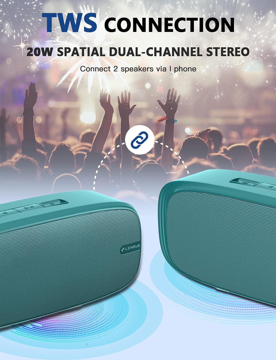 LENRUE Bluetooth Speaker, Wireless Portable Speaker with Loud Stereo Sound, Rich Bass, 12-Hour Playtime, Built-in Mic. Perfect for iPhone, Samsung and More