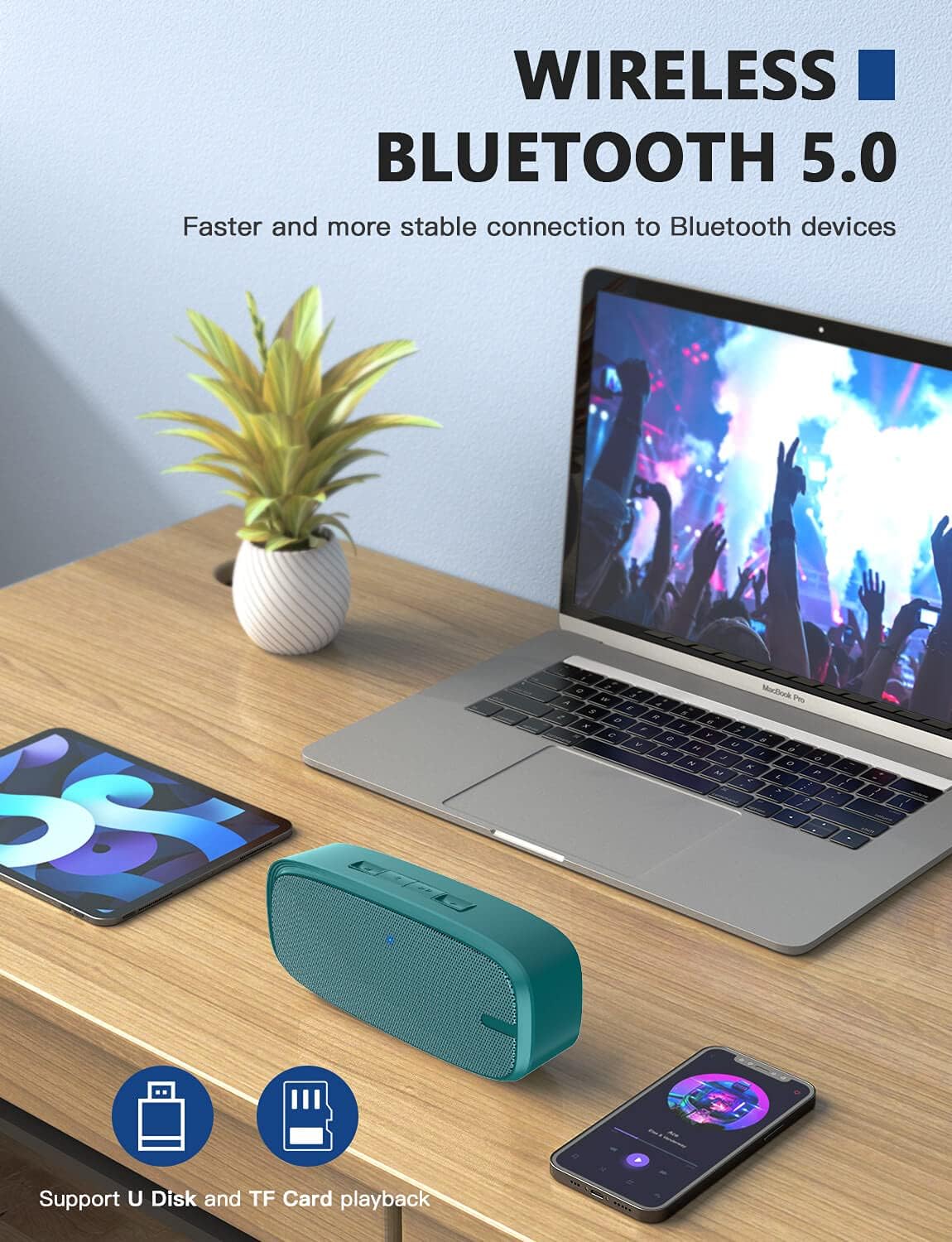 • Lasts a Long Time: Built-in 1500 mAh rechargeable battery powers up to 12 hours playtime. Small, but such powerful Bluetooth speakers. Support the USB, micro SD card (32GB max), aux playback.