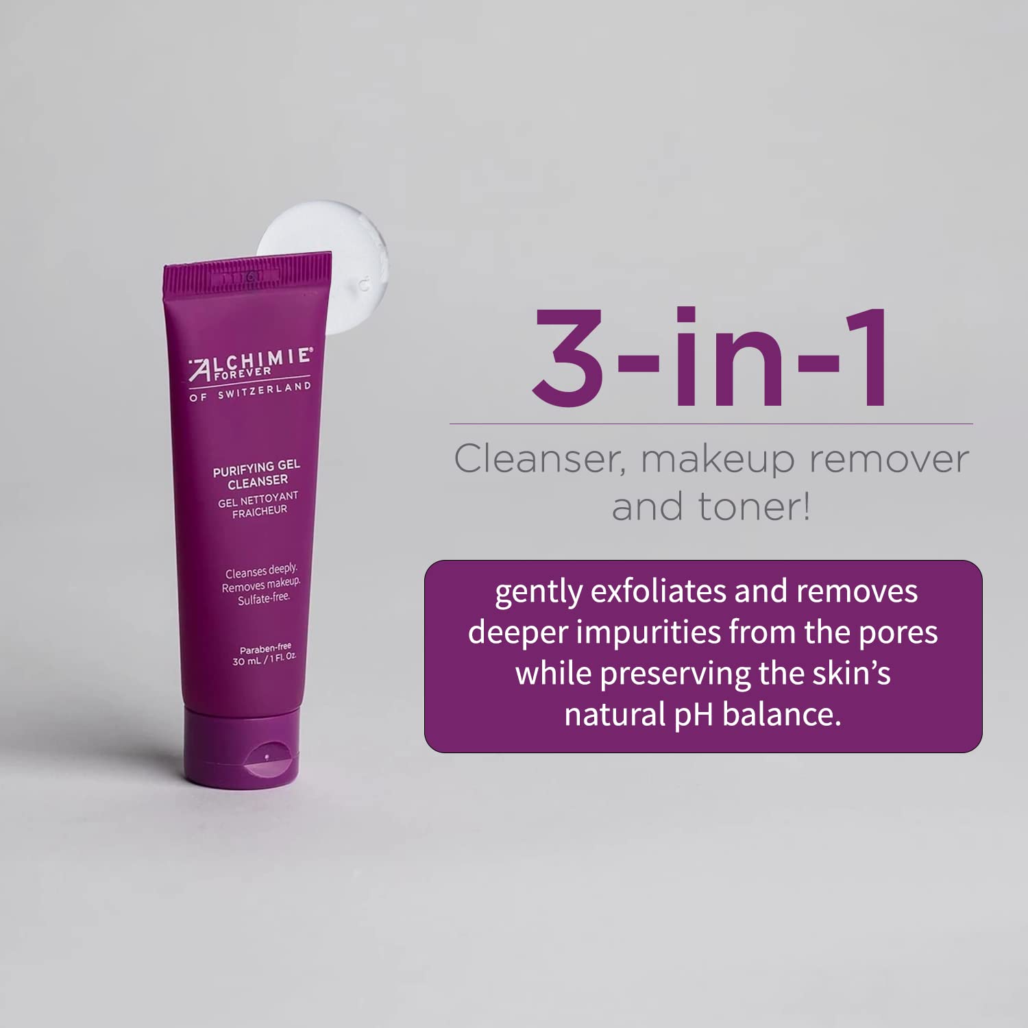 Alchimie Forever Purifying Gel Facial Cleanser | Sulfate-Free Cleansing Gel with Papaya Enzyme, Grapefruit, and Cucumber I Gently Exfoliates, Removes Impurities, Brightens, and Dissolves Makeup and Excess Oils (1 Fl oz)