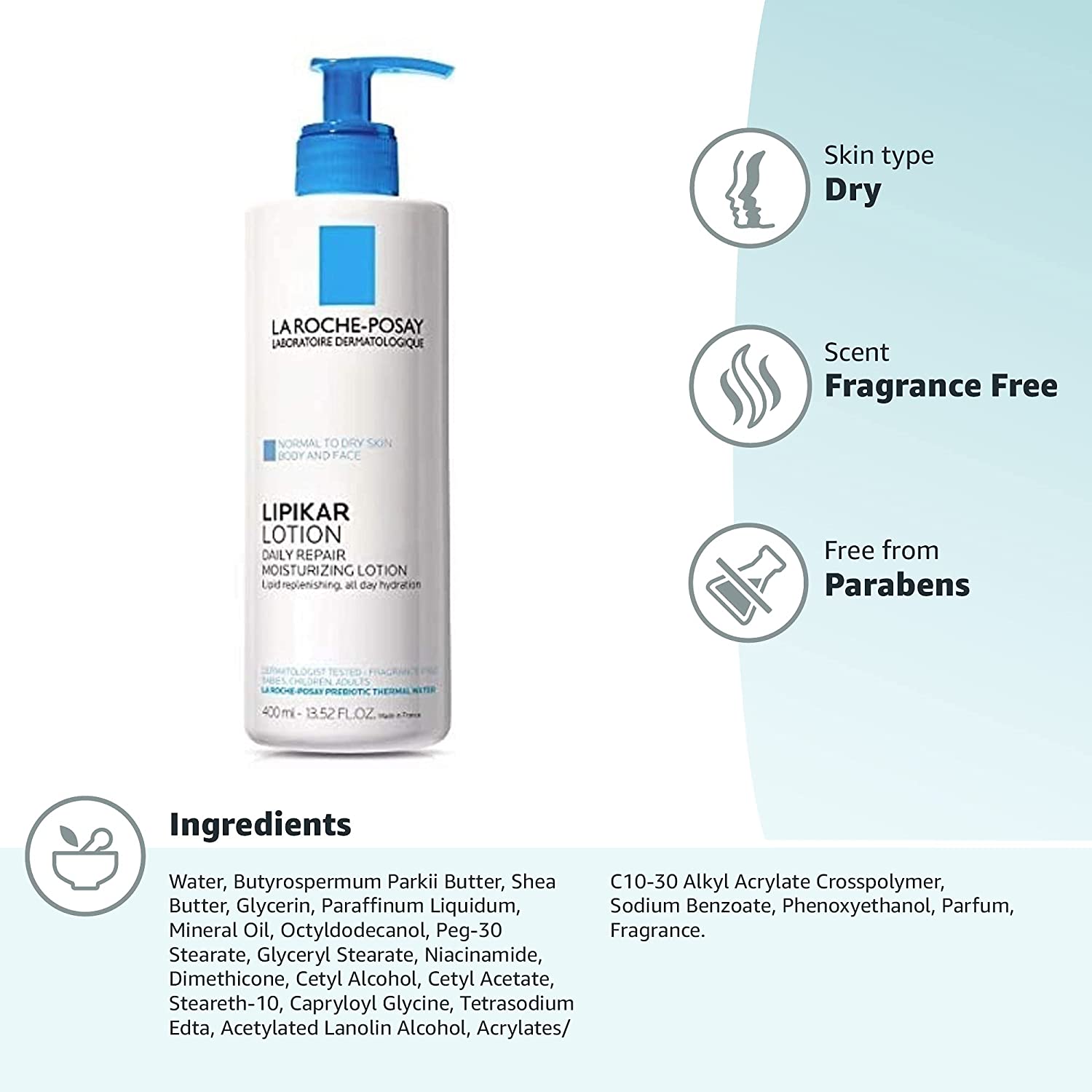 La Roche-Posay Lipikar Daily Repair Moisturizing Cream, Fragrance Free Body Moisturizer with Shea Butter, Body Lotion for Dry Skin, Moisturizing for Sensitive Skin