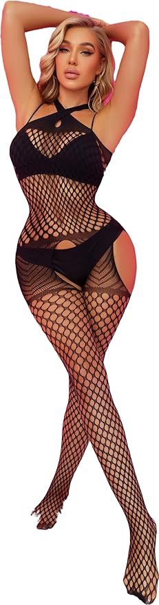 Women's One Piece Fishnet Lingerie Bodysuit Mesh Bodystocking Sexy Tights Nightwear Jumpsuit Underwear