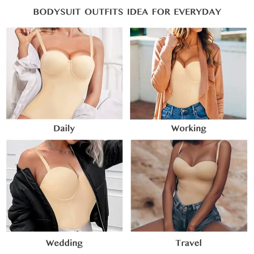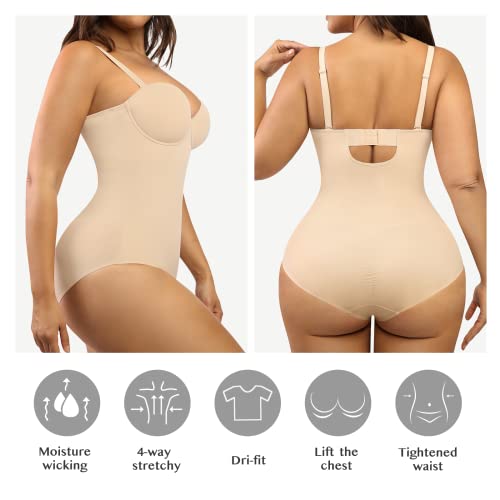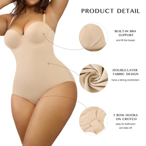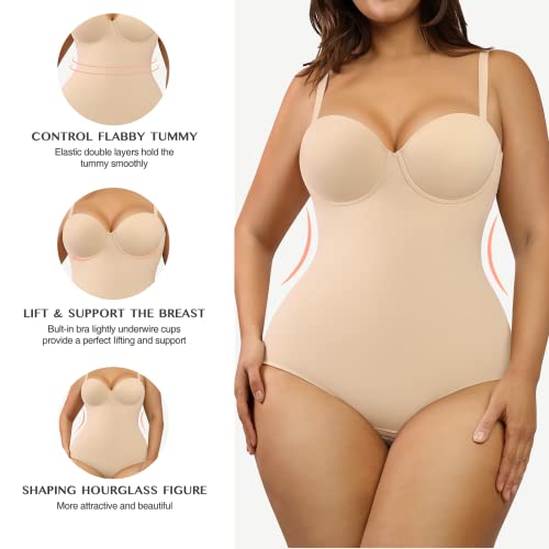 FeelinGirl Shapewear Bodysuit Tummy Control Body Shaper Strapless Shapewear Slimming Bodysuit for Women Cupped with Bra